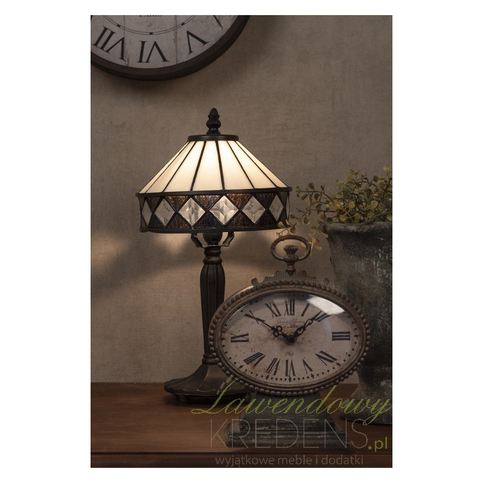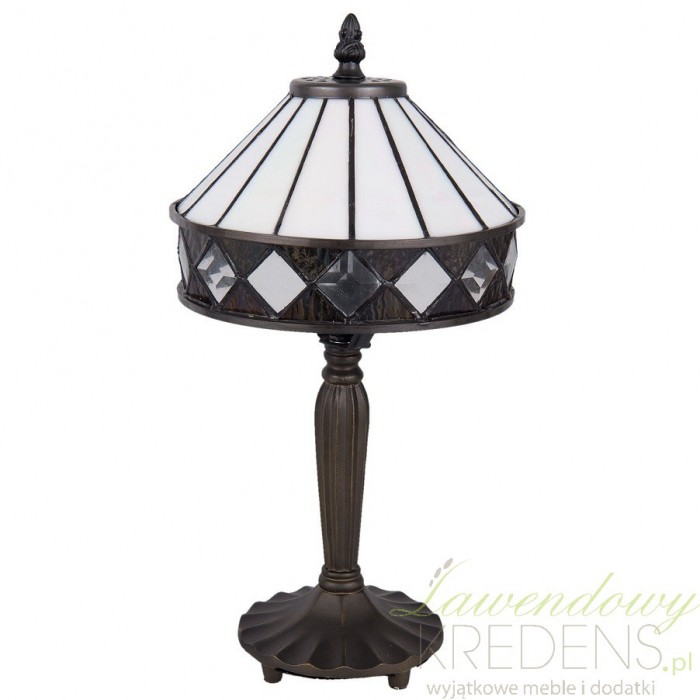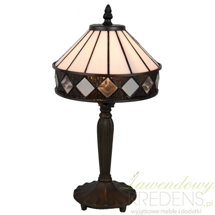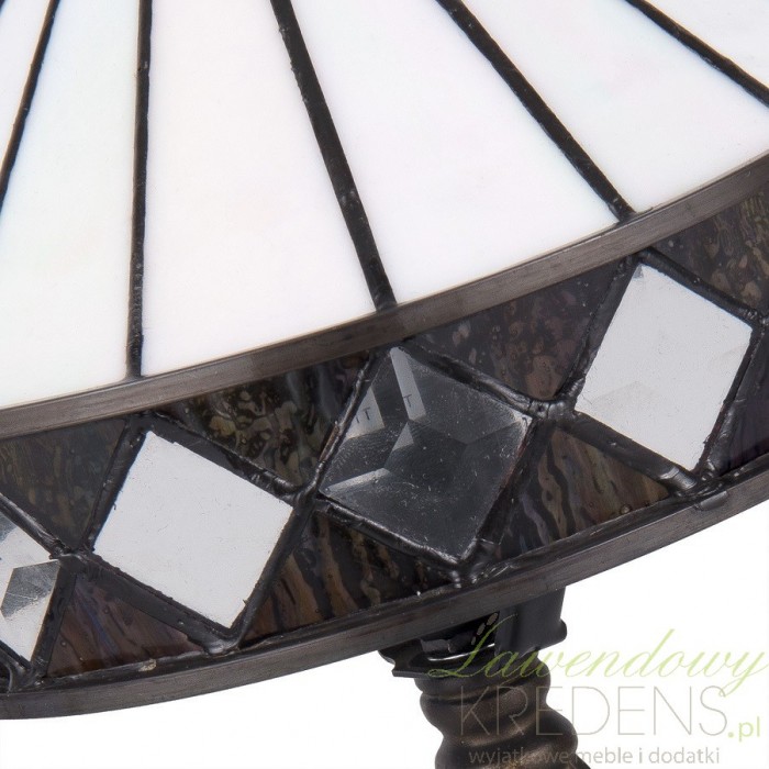 Lampa Tiffany wykonana jest z wysokiej jakości szkła i polirezynu. Lampa witrażowa ma wspaniałe pasy ozdobne u góry a u dołu dekorację w formie rombów. To co ją wyróżnia to przepiękna i stabilna noga na okrągłej podstawce. Lampy witrażowe wyglądają cudownie i tak też się prezentują.
