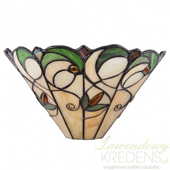 Kolorowy kinkiet Tiffany z kwiatowym wzorem, kształtem przypomina kielich wiosennego kwiata z polnej łąki - najlpeszy by wprowadzić do wnętrza światło i dozę naturalności.