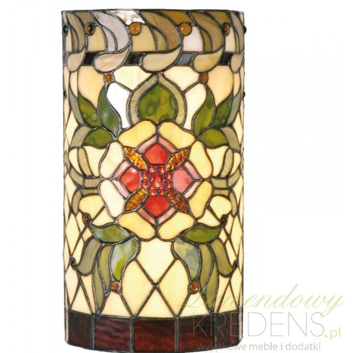 Zachwycający kinkiet Tiffany ze szkła w kolorze zielonym, żółtym i brązowym. Prosty kinkiet wyróżnia się witrażową strukturą i przedstawia rozwinięty kwiat. lampy Tiffany wykonane z niewielkich kawałków szkła sa stylizowane na styl prowansalski. Wyjątkowe i pasujące do rożnorodnych wnętrz szklane kinkiety Tiffany to zaszczyt dla Twojej ściany!