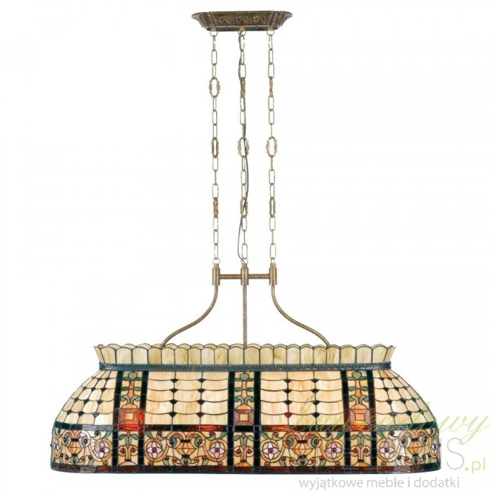 Lampa sufitowa Tiffany to wyjątkowy i stylowy element dekoracyjny, który przyciąga uwagę swoją wyjątkową urodą. Ta duża lampa sufitowa prezentuje się niezwykle efektownie i zachwyca zarówno swoim wzornictwem, jak i wykonaniem. Sprawdzi się na przykłąd zawieszona nad podłużnym stołem.