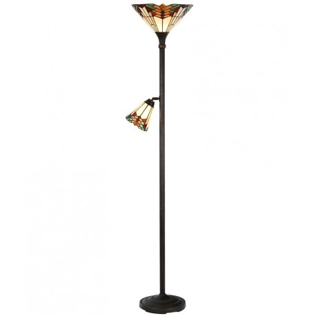 Wysoka lampa Tiffany to jedna z witrażowych lamp od holenderskiego producenta Clayre&Eef. Lampa ma smukłą nogę i dwa źródła światła.