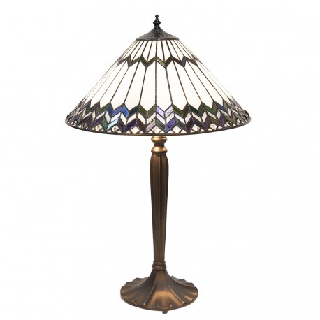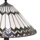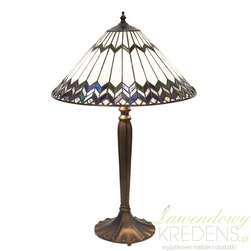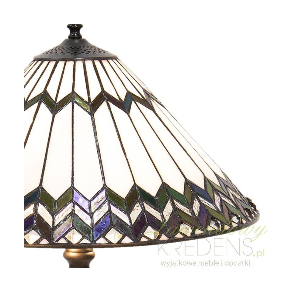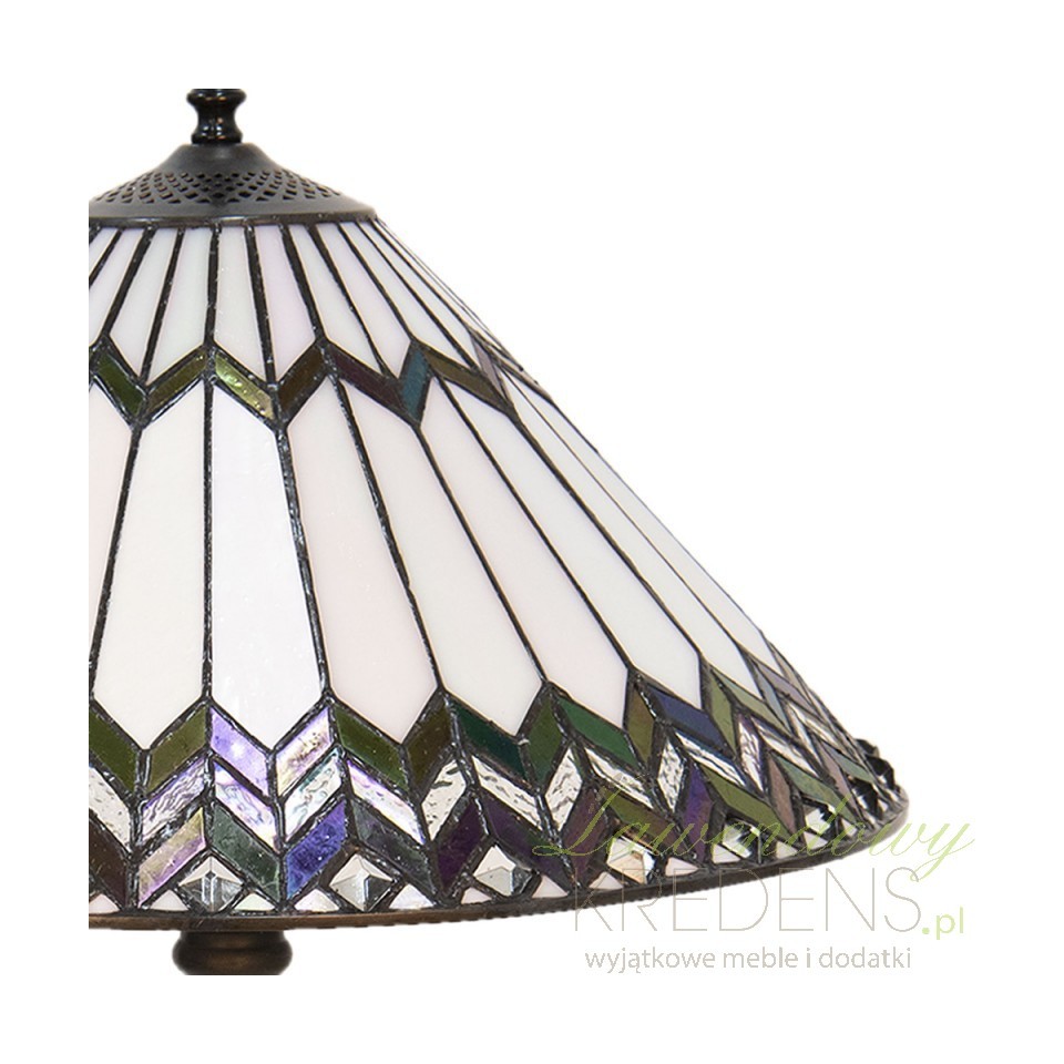 Klosz w kształcie stożka to pierwszy element, który przyciąga uwagę. Zdobiony oryginalnymi wzorami w formie ciemnych zygzaków, tworzą one niezwykle efektowny efekt wizualny. Ale to nie wszystko - klosz został wykonany z wielu szklanych, małych elementów, ułożonych ręcznie. To właśnie dzięki temu nasza lampa Tiffany emanuje wyjątkowym urokiem i elegancją.