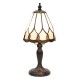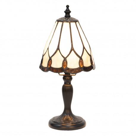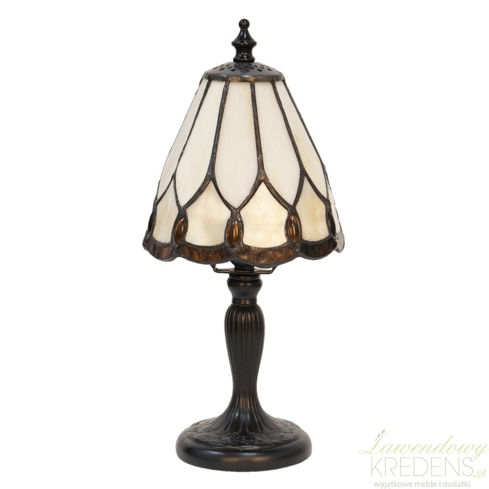Lampa Tiffany stołowa Clayre & Eef to niczym magiczny portal do świata fantazji i sztuki, gdzie światło staje się kolorowym tańcem na płaszczyźnie wzorów. Klosz, o charakterystycznym tradycyjnym kształcie, otwartym ku dołowi, jest jak malowidło, na którym powtarza się hipnotyzujący wzór w odcieniach brązu i kremu.