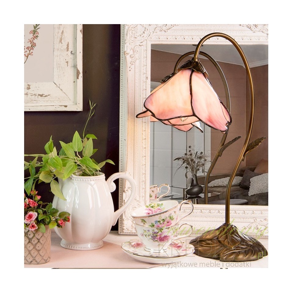 Klosz w kształcie różowego kwiatu to połączenie natury i sztuki, które sprawia, że witrażowa lampa stołowa Tiffany Clayre & Eef staje się nie tylko źródłem światła, ale również niesamowitą dekoracją. Skierowany ku dołowi, rozświetla przestrzeń w delikatny sposób, tworząc romantyczną aurę. Ręcznie ułożone wzory ze szkła to hołd dla tradycji i rzemiosła artystycznego. Każdy element jest misternie wykonany, co nadaje lampie niepowtarzalny charakter.