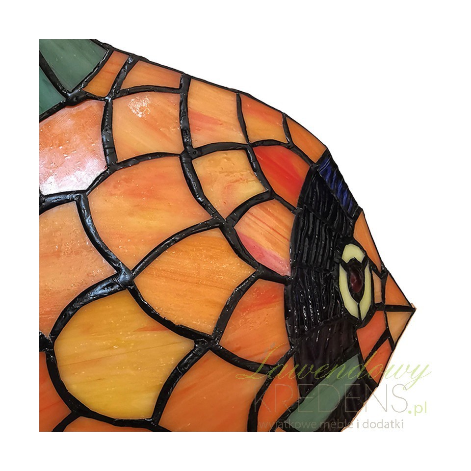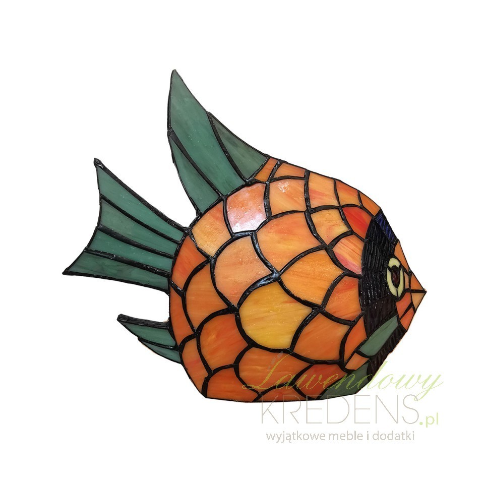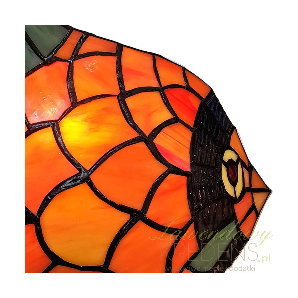 Nasza witrażowa lampa stołowa Tiffany Ryba to prawdziwy majstersztyk, który przeniesie Cię w świat podwodnych przygód i tajemniczych głębin. Kształt ryby, z pomarańczowymi łuskami i zielonymi płetwami, nadaje lampie niezwykłej ekspresji i dynamizmu.