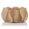 Kształt klosza, modelowanego na kwiata, sprawia, że lampa przypomina prawdziwy bukiet, rozkwitający na blasku światła. Płatki kwiata, zdobiące klosz, wydają się niemal pulsować, kiedy światło przenika przez delikatne wzory. To nie tylko źródło światła, ale także obiekt sztuki, który emanuje subtelnym pięknem.