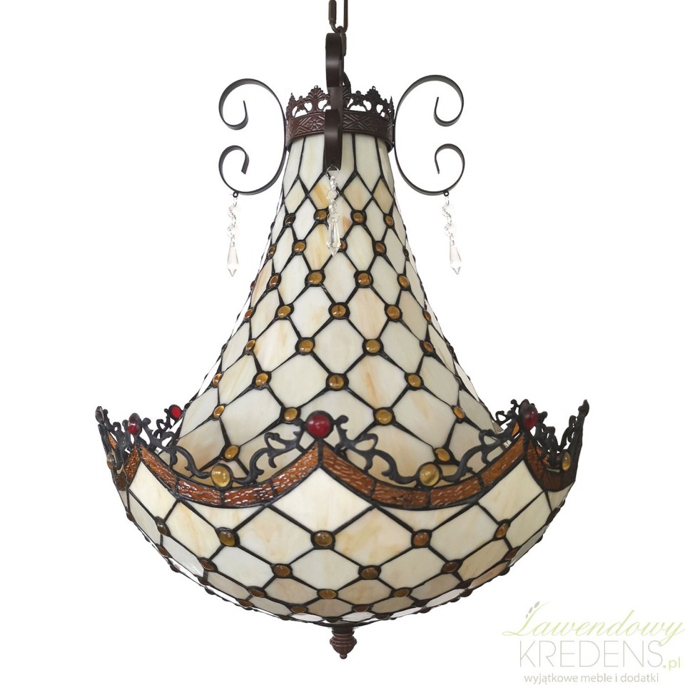 Ten wspaniały żyrandol Tiffany to klejnot wśród lamp wiszących od marki Clayre & Eef. Zwężany ku górze klosz jest wykonany z kolorowych szkiełek i zdobiony zawieszkami z połyskującymi kryształkami. Żyrandole Tiffany gwarantują wspaniałe efekty świetlne i ciepłą atmosferę w domowych zaciszach, hotelach, ekskluzywnych restauracjach i galeriach. Pamiętaj, że lampy witrażowe Tiffany to dodatki do pokoju z limitowanej kolekcji – pospiesz się i zamów swój wymarzony model już teraz!