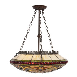 Żyrandol Tiffany wygląda jak majestatyczny dodatek, z misternie zdobionym kloszem w formie witraża. Ciepły kolor szkła i metalowa podsufitka wzbogacona ornamentami podkreślają charakter tej niepowtarzalnej lampy. Zanurz swój salon w ciepłym świetle i postaw na witrażowe żyrandole Tiffany. Tylko u nas znajdziesz najpiękniejsze z nich!