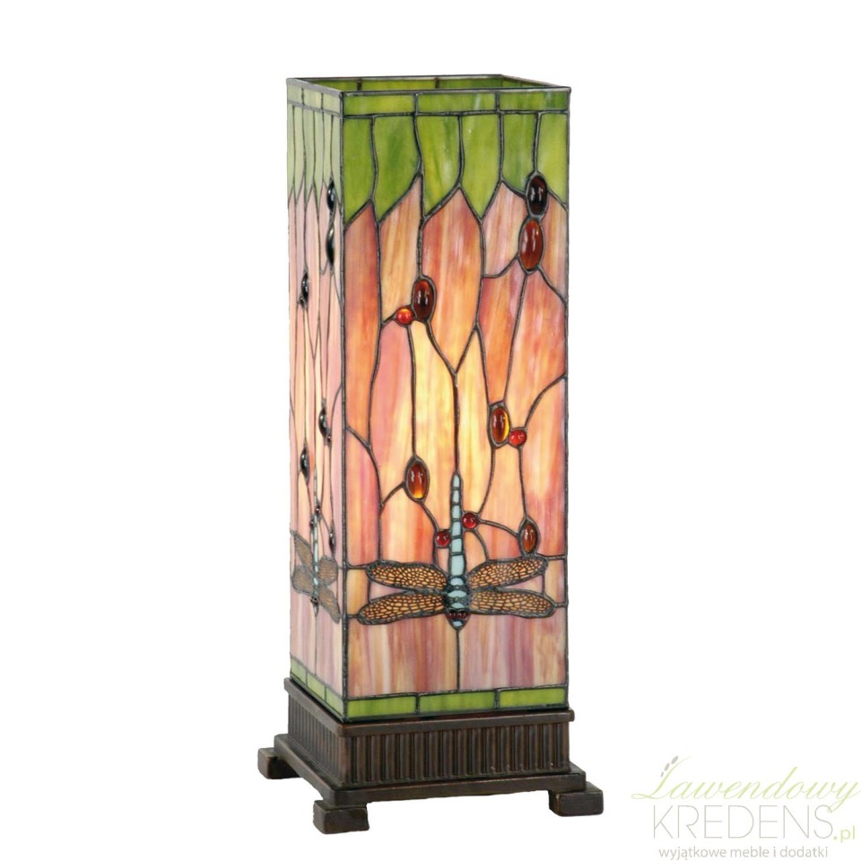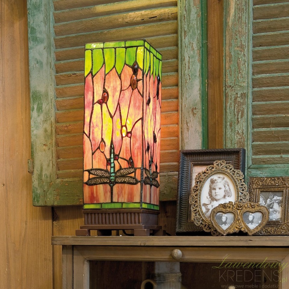 Głównym elementem lampy Tiffany jest jej klosz w kształcie prostopadłościanu, który natychmiast przyciąga uwagę swoją harmonią i finezją. Wykonany z najwyższej jakości szkła, klosz ten emanuje niezwykłą jakością i trwałością. Ręczne wykonanie pozwala na tworzenie witrażowych wzorów, co sprawia, że każda lampa stojąca Tiffany Prosta jest unikatowym dziełem sztuki. Motywy ważek i zielonych liści, delikatnie wpisane w strukturę szkła, nadają lampie niepowtarzalny, przyrodniczy charakter.