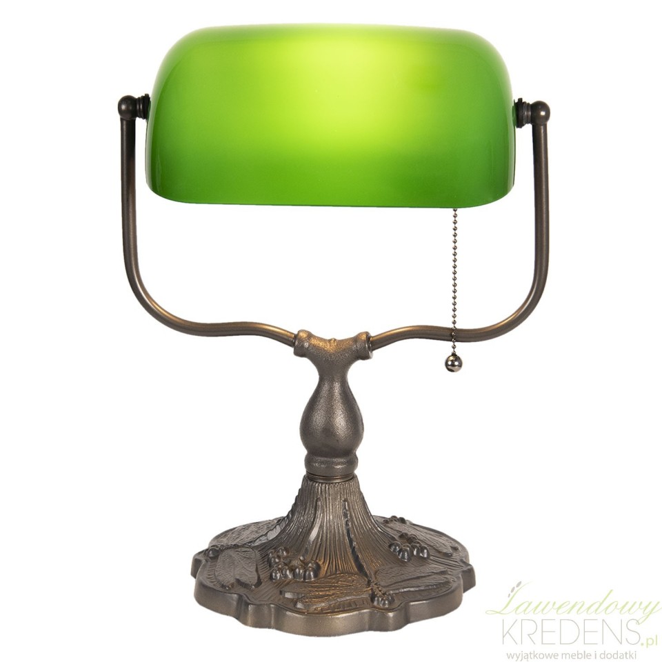Idealna na biurko lub stolik, lampa biurkowa Tiffany posiada podłużny, szklany klosz w kolorze magnetycznej i przyciągającej wzrok zieleni.