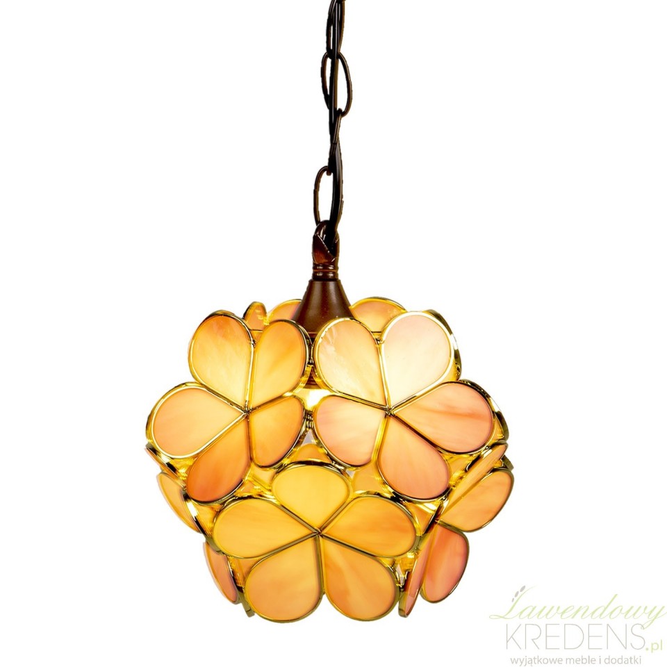 Lampa wisząca Tiffany kwiatki Clayre & Eef to bez wątpienia arcydzieło sztuki, które przenosi nas w magiczny świat barw i delikatnych form. Jej kulisty klosz to niczym połączenie natury i mistycznego uroku, wykonany z mniejszych elementów w kształcie kwiatów, które rozkwitają w ciepłych odcieniach pomarańczu.