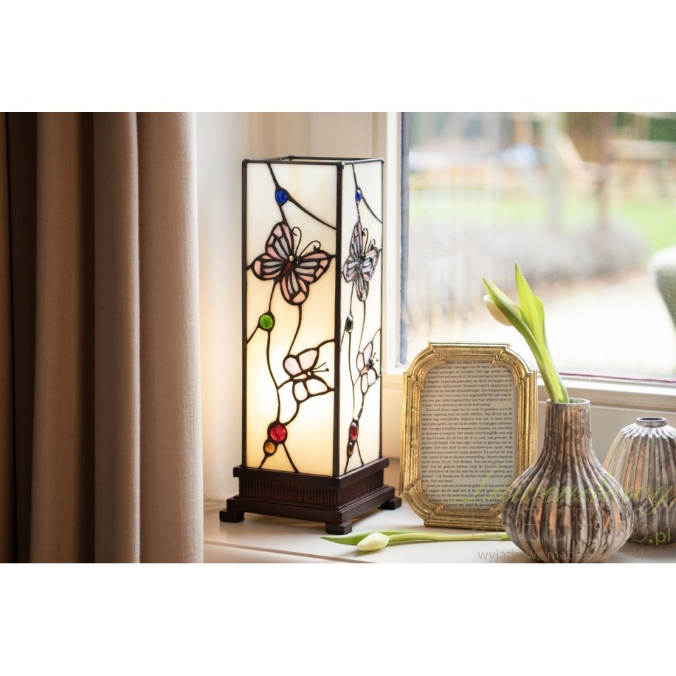 Znane na całym świecie diamenty Tiffany’ego to główna inspiracja, za sprawą której marka Clayre & Eef tworzy olśniewające lampy witrażowe. Jedną z tych wyjątkowych lamp jest lampa stołowa Tiffany słupek, na której powierzchni wykonano przepiękny witraż z fioletowymi motylami. Zamknięta w klasycznej formie prostopadłościanu lampa to metafora luksusu i elegancji, tak bardzo pasująca do wnętrz francuskich. Myśląc o tym jakie lampy stołowe Tiffany powinniśmy wybrać do swojego domu, warto postawić na te najbardziej kolorowe i eleganckie! To dodatki do pokoju, które dodadzą wdzięku każdej aranżacji.