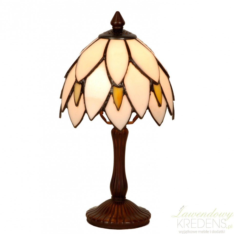 Lampa stołowa Tiffany brązowo-kremowa została zaprojektowana tak, aby eksponować piękno żarówki za pomocą zjawiskowych i eleganckich form.