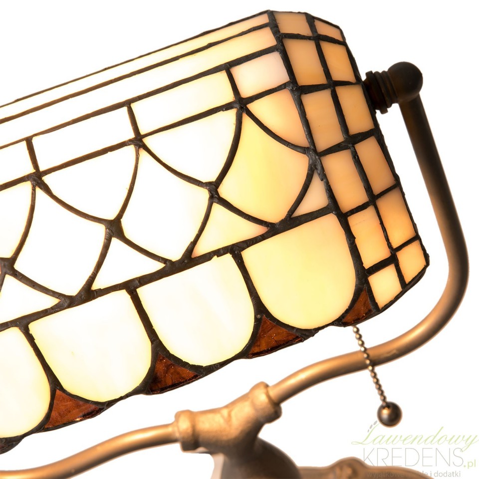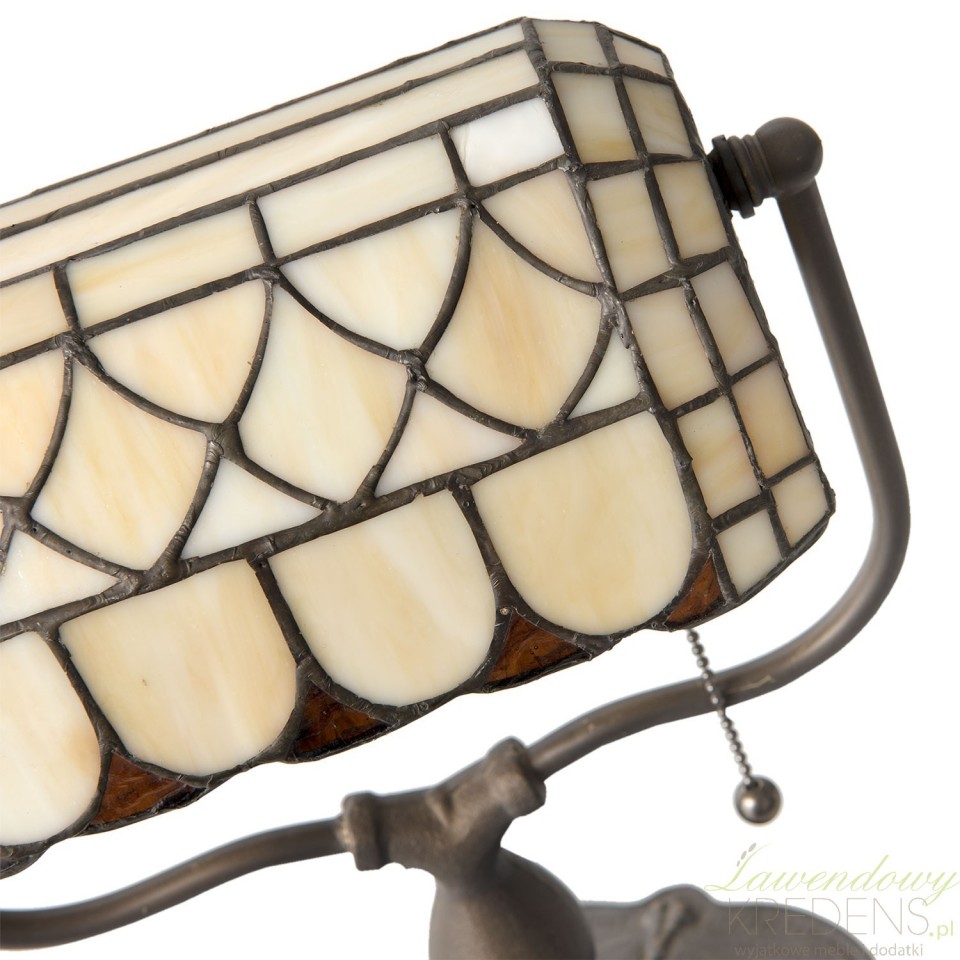 Lampa Tiffany biurkowa z podłużnym kloszem to projekt, który szczerze wyraża piękno światła i fascynację witrażowymi formami.