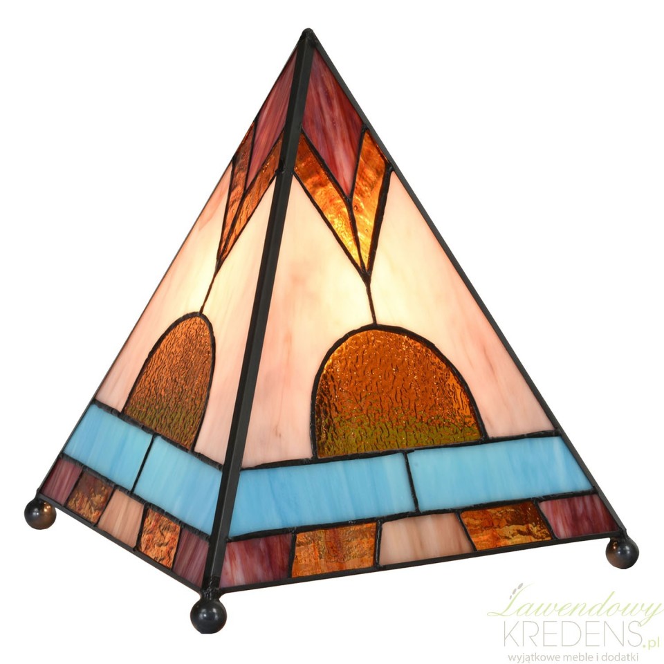 Kolorowa, stołowa lampa Tiffany trójkąt to jedna z wielu ciekawych lamp od Clayre & Eef, która zwraca na siebie uwagę dzięki nieprzeciętnej formie.