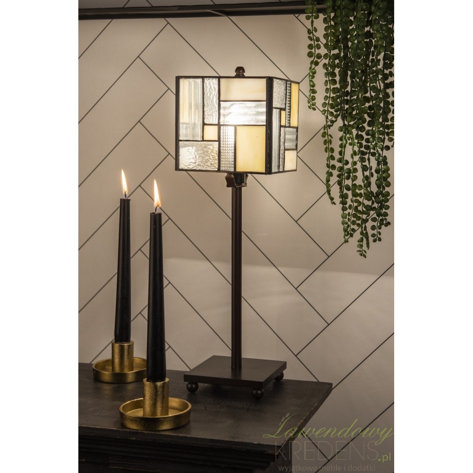 Lampka stołowa Tiffany Clayre & Eef posiada witrażowy klosz, który przyjemnie filtruje światło i delikatnie rozprasza je w otoczeniu.