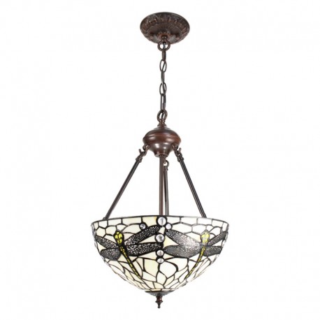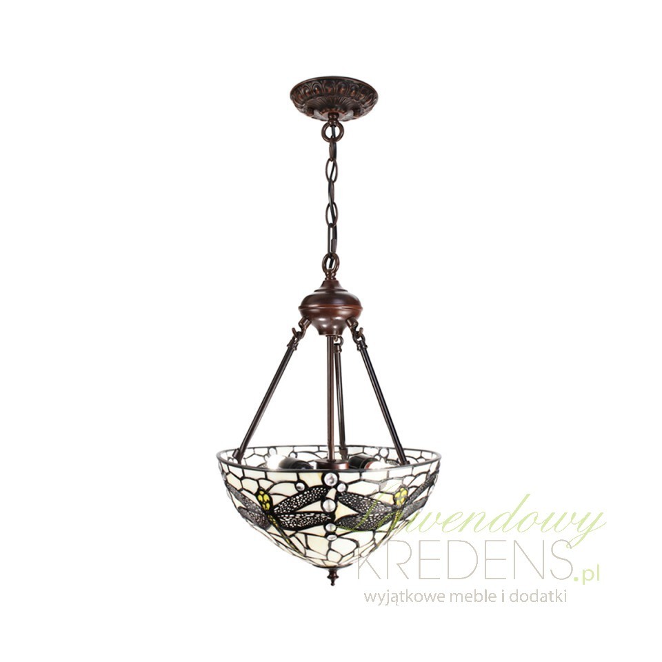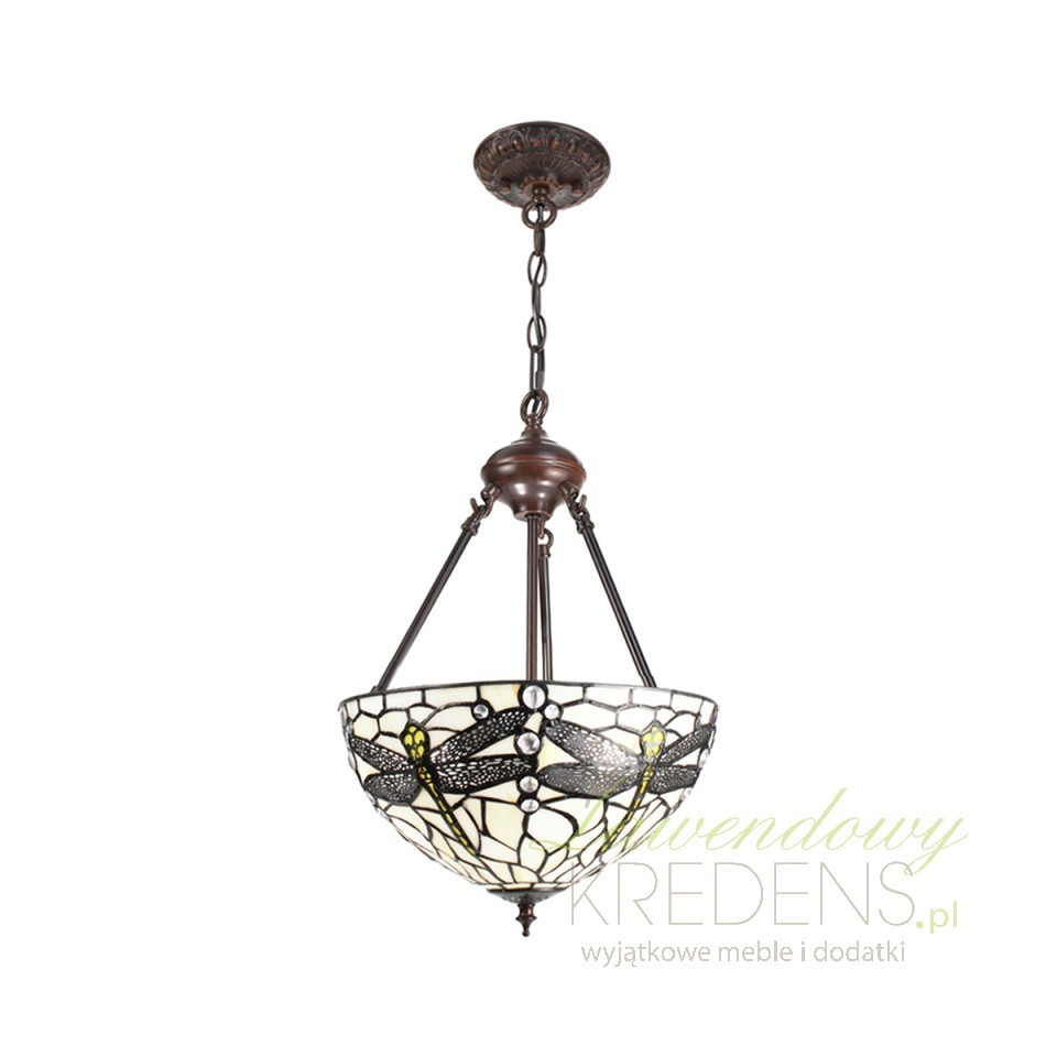 Lampa sufitowa Tiffany z ważkami Clayre & Eef prezentuje się imponująco ze względu na wielkość klosza, który posiada mnóstwo magicznych detali.