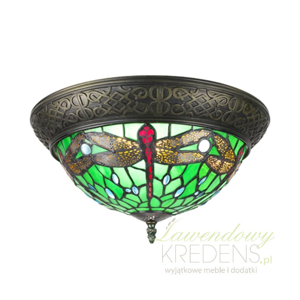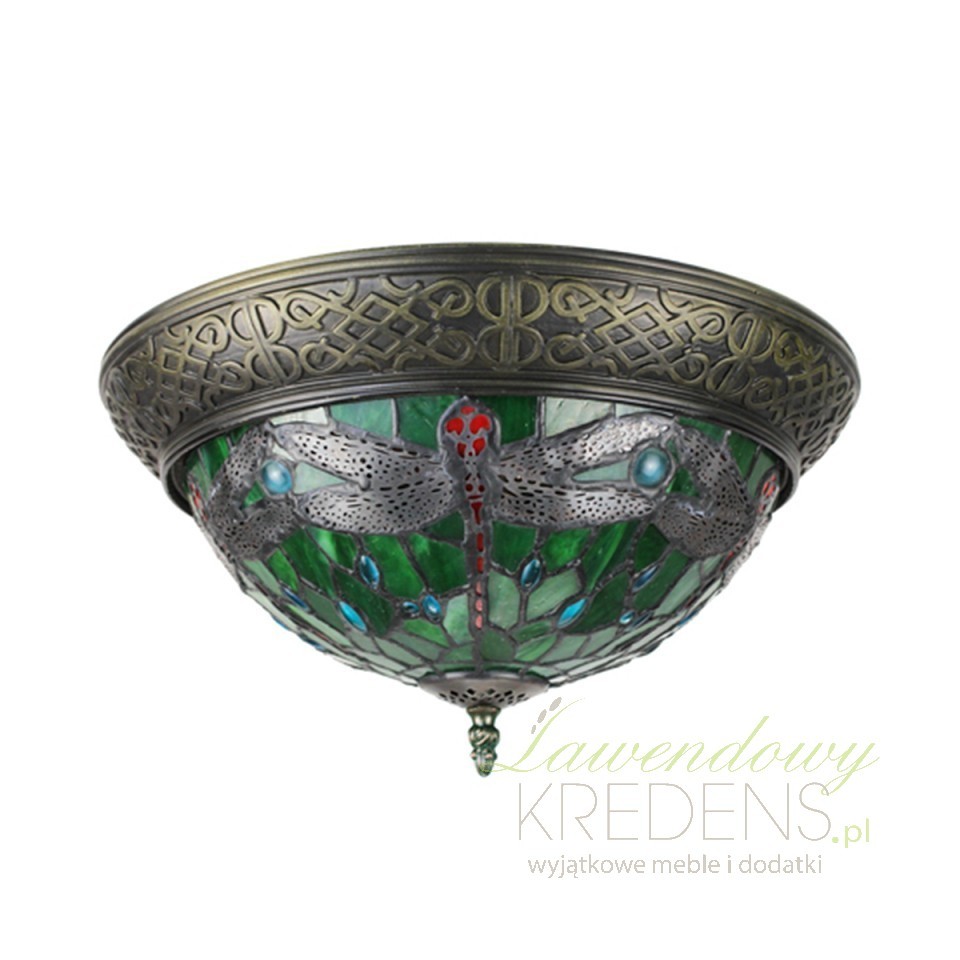 Lampa Tiffany Plafon z dumą prezentuje się w przestrzeni domowej, wprowadzając aurę klasycznej elegancji i unikalnego piękna. CHarakterystycznym elementem lampy jest przepiękny, kolorowy klosz, który wyróżnia się niezwykłą precyzją wykonania i bogactwem kolorów. Motyw ważki, delikatnie unoszącej się nad zielonym tłem szkła witrażowego, nadaje lampie niepowtarzalny charakter. Każda ważka została precyzyjnie wykonana, a detale ich skrzydeł i ciała są tak realistyczne, że można poczuć delikatne ruchy powietrza pod ich skrzydłami.
