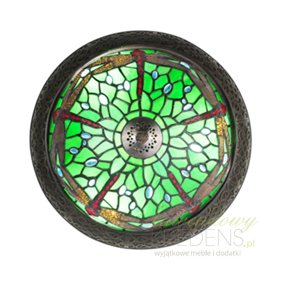Witrażowe elementy składające się na plafon lampy Tiffany są mistrzowsko połączone, tworząc harmonijną kompozycję światła i koloru. Kiedy lampę włączysz, pomieszczenie wypełni się magicznym blaskiem, a różnobarwne refleksy na ścianach dodadzą wnętrzu ciepła i przytulności. To nie tylko lampa, to prawdziwe dzieło sztuki, które ożywia przestrzeń i sprawia, że staje się ona niepowtarzalna.