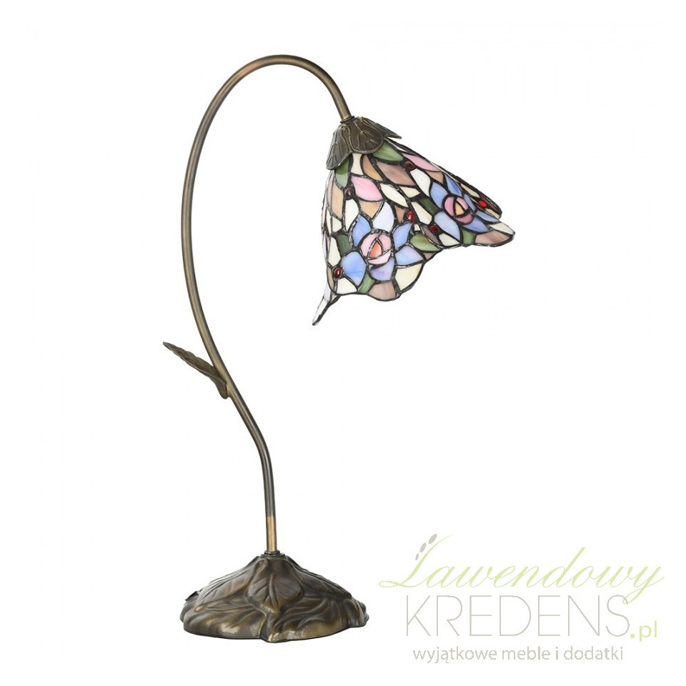 Konstrukcja lampy jest solidna i elegancka, a jej metalowa konstrukcja imituje łodygę. W pięknym, ozdobnym kloszu znajduje się jedno miejsce na żarówkę.