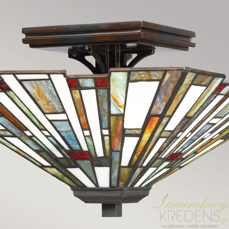 Kolekcja Maybeck to czarujący zestaw lamp w stylu Tiffany’ego. Każdy klosz powstaje z artystycznego szkła witrażowego w wielu barwach – żaden element się nie powtarza, więc otrzymujesz oprawę z wyraźnie „ręcznym” efektem. Dzięki temu światło nie jest ostre: zyskuje miękkość i subtelne przejścia kolorów, które dobrze wyglądają wieczorem w salonie, w holu czy w sypialni.Gdzie plafon Maybeck sprawdza się najlepiej