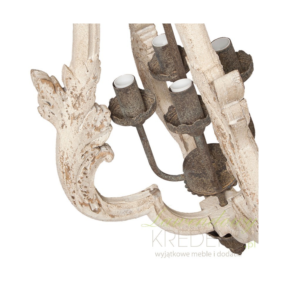 Żyrandol Clayre & Eef w stylu prowansalskim jest wyjątkowy i uroczy. Wykonany z drewna w kolorze kremowym i metalu w kolorze brązowym idealnie wpasowuje się w rustykale i prowansalskie wnętrza.