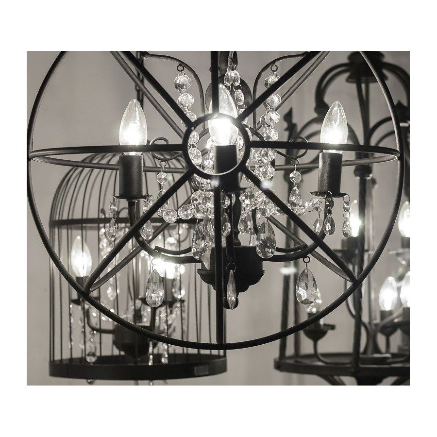 Lampa Belldeco ujęta w kolistą plątaninę metalowych elementów to przepiękna ozdoba do pokoju z błyszczącymi kryształkami w środku.