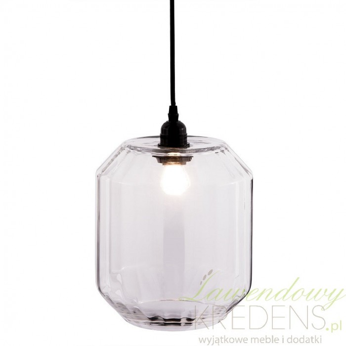 Szklane lampy są najlepszym wyborem do oświetlenia wnętrz takich jak kuchnie i łazienki, w których jasne światło to podstawa. Szklana lampa sufitowa w kształcie figury geometrycznej wyglądem przypominająca prostopadłościan ma prążkowaną strukturę. Wewnątrz klosza wkręcona została niewielka, okrągła żarówka. Lampa wyposażona w długi kabel wprowadzi do wnętrza odrobinę lofotowego designu.