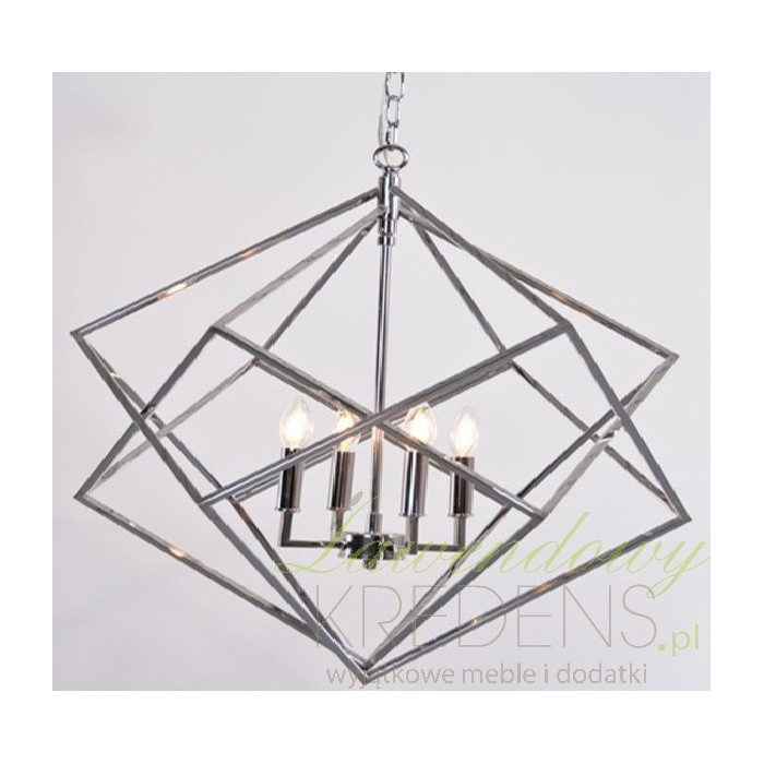 Żyrandol Belldeco w stylu galmour to geometryczny klosz z metalowych prętów do zawieszenia na łańcuchu. Całość w kolorze srebrnym odsłania cztery żarówki w kształcie eleganckich świec. Duży żyrandol doskonale dopełni nowoczesne wnętrze i odpowiednio je oświetli. Zawieś żyrandole w stylu glamour w centralnej części sufitu aby podkreślić design wnętrza.