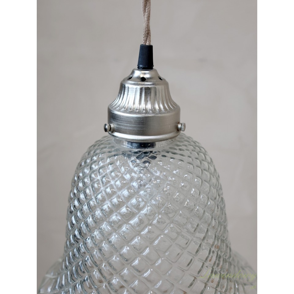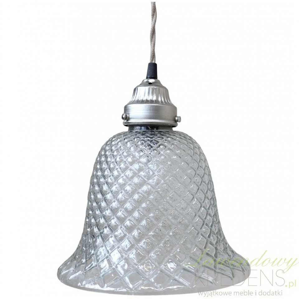 Szklana lampa prowansalska dzwonek o strukturze z drobnymi wypustkami to dekoracyjna lampa wisząca od marki Chic Antique.