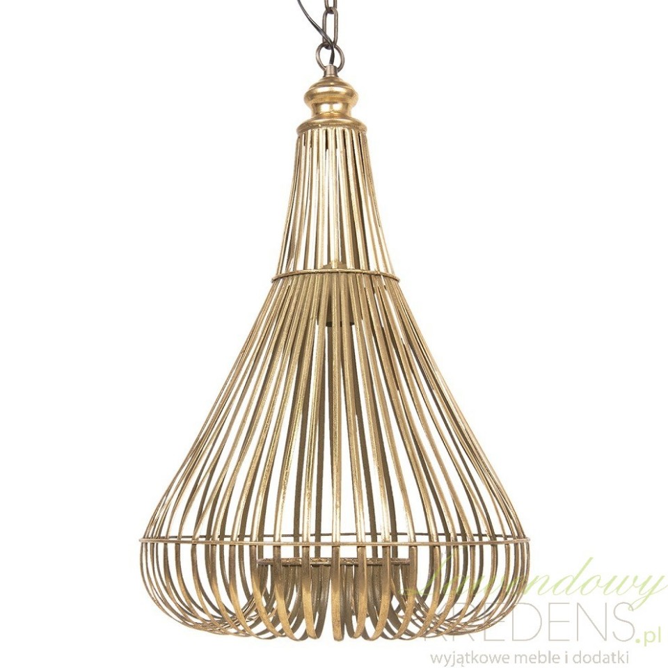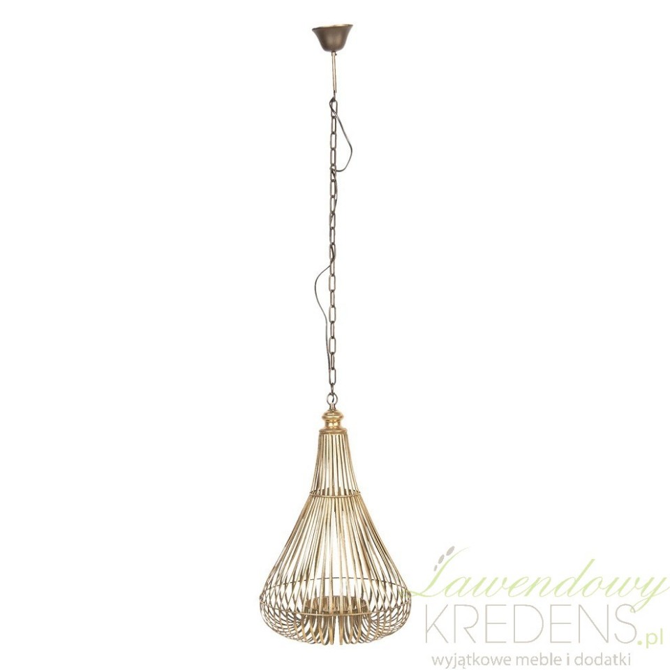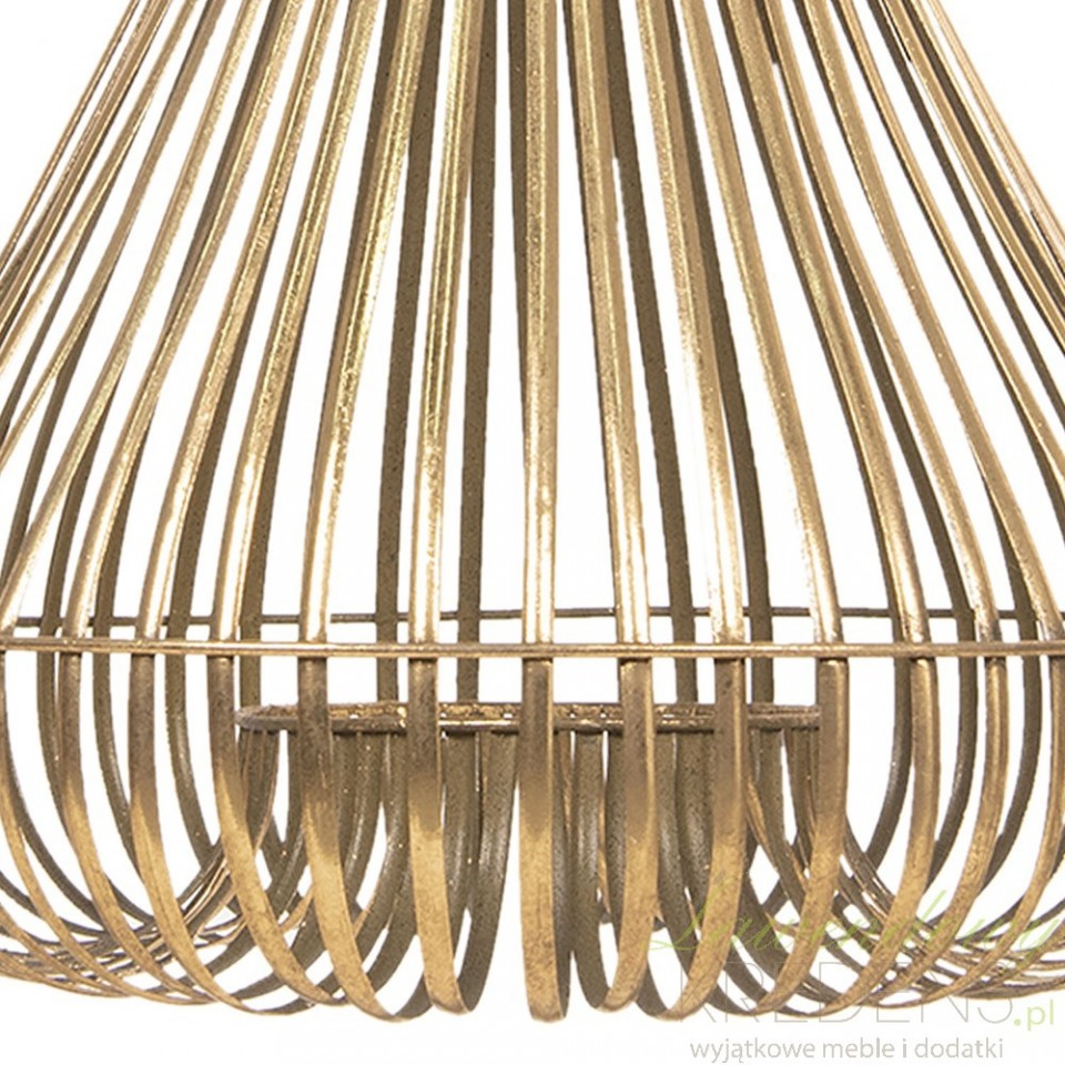 Dbałość o każdy niuans i precyzja wykonania, z jaką zostały stworzone złote lampy od Clayre&Eef jest gwarancją zaskakującego i satysfakcjonującego efektu. Złota lampa w ażurowej formie wykonana z metalowych prętów szczególnie zalecana jest dla najbardziej wymagających klientów urządzających wnętrza w stylu francuskim, industrialnym lub nowoczesnym. To jest najlepszy i nietuzinkowy pomysł na dekoracyjne oświetlenie salonu lub jadalni. Lampa posiada jedno źródło światła.