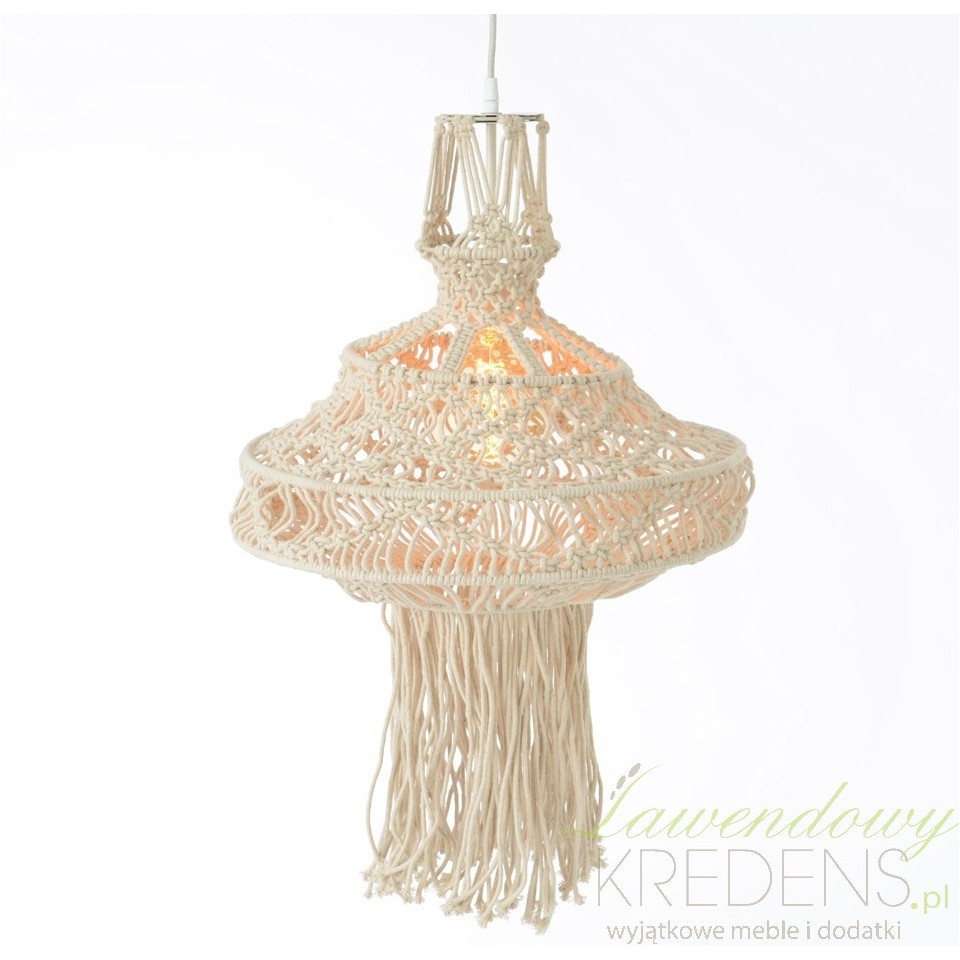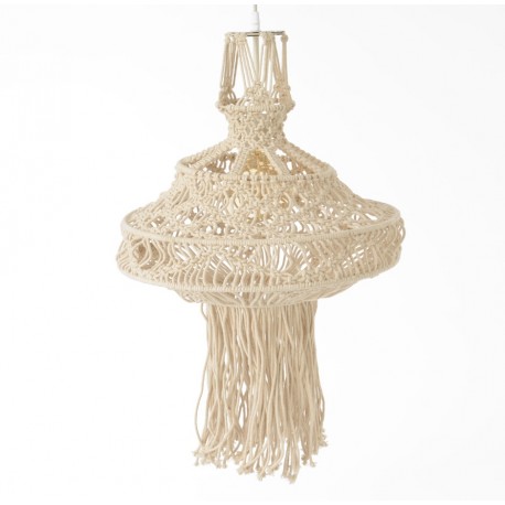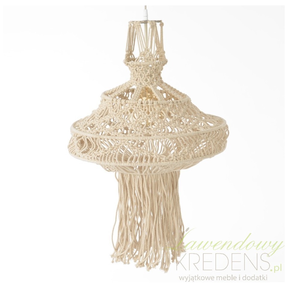 Kremowa lampa Makrama to sposób na podkreślenie naturalnego stylu wnętrza za pomocą funkcjonalnego dodatku. Wytrzymały, wykonany ze sznurka klosz ma jasny kolor, który świetnie pasuje do wnętrz boho i skandynawskich. Lampa sznurkowa nie będzie kolidowała z drewnianymi lub rattanowymi meblami. Rozświetl swoją przestrzeń w salonie wybierając plecione lampy od francuskiej marki!