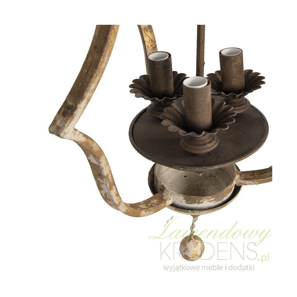 Wybierz gwiazdę aranżacji i zamów postarzany żyrandol w stylu prowansalskim w kolorze antycznej bieli i złota. To najlepszy sposób na oświetlenie i ozdobę wnętrza jednocześnie. Żyrandol prowansalski z otwartym kloszem doskonale będzie wyglądał na neutralnym tle, pięknie komponując się z resztą wystroju wnętrza. W aktualnej kolekcji marki Clayre & Eef znalazło się wiele inspiracji, a w tym prowansalskie żyrandole przełamane efektownymi postarzeniami. Znajdziesz wśród nich również niepowtarzalne lampy i abażury – zobacz je wszystkie już teraz!