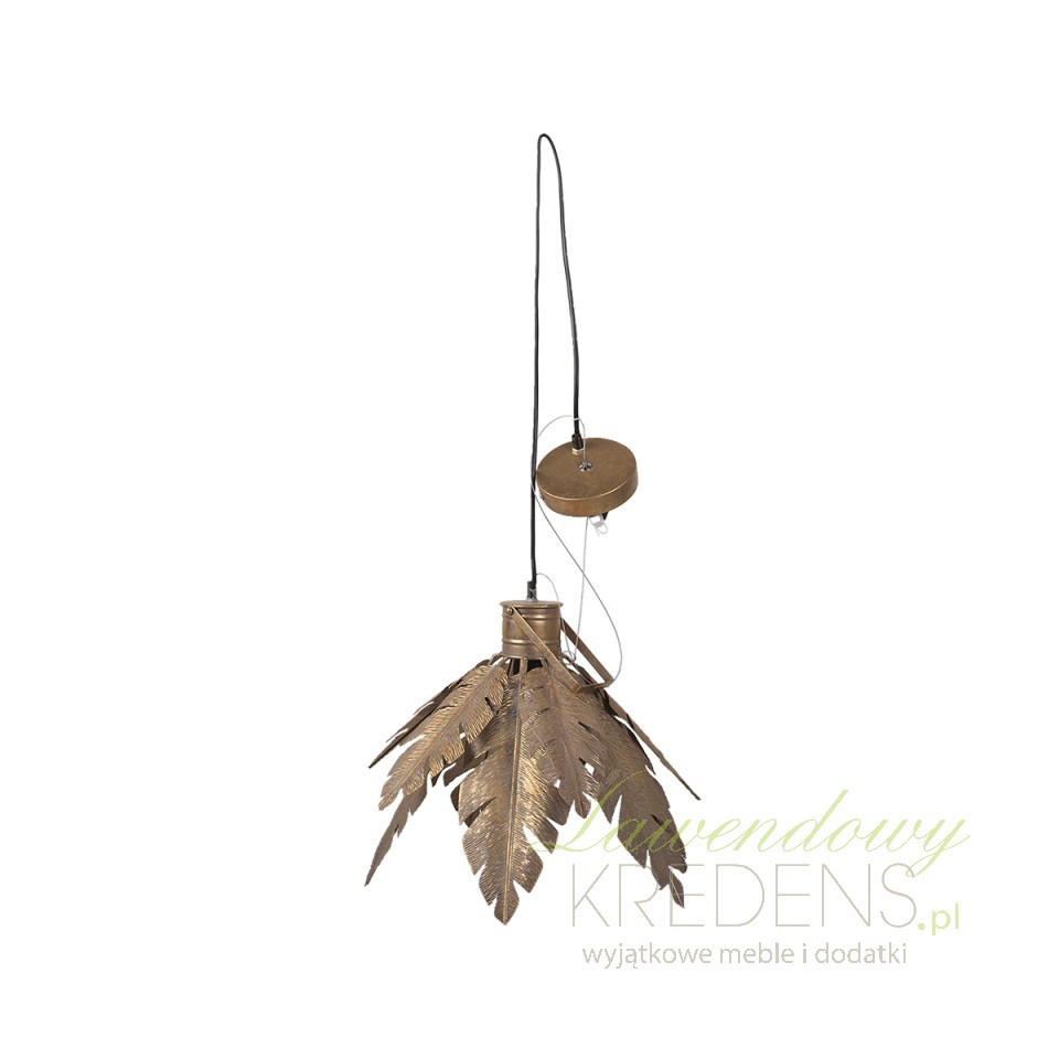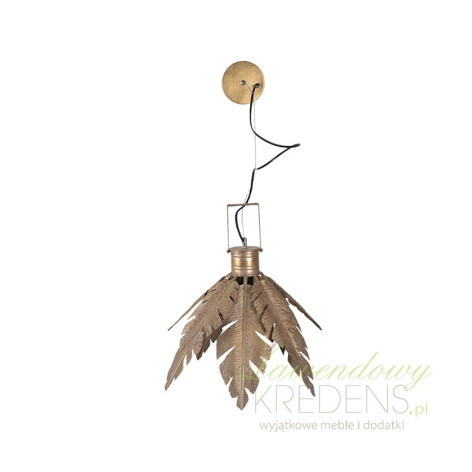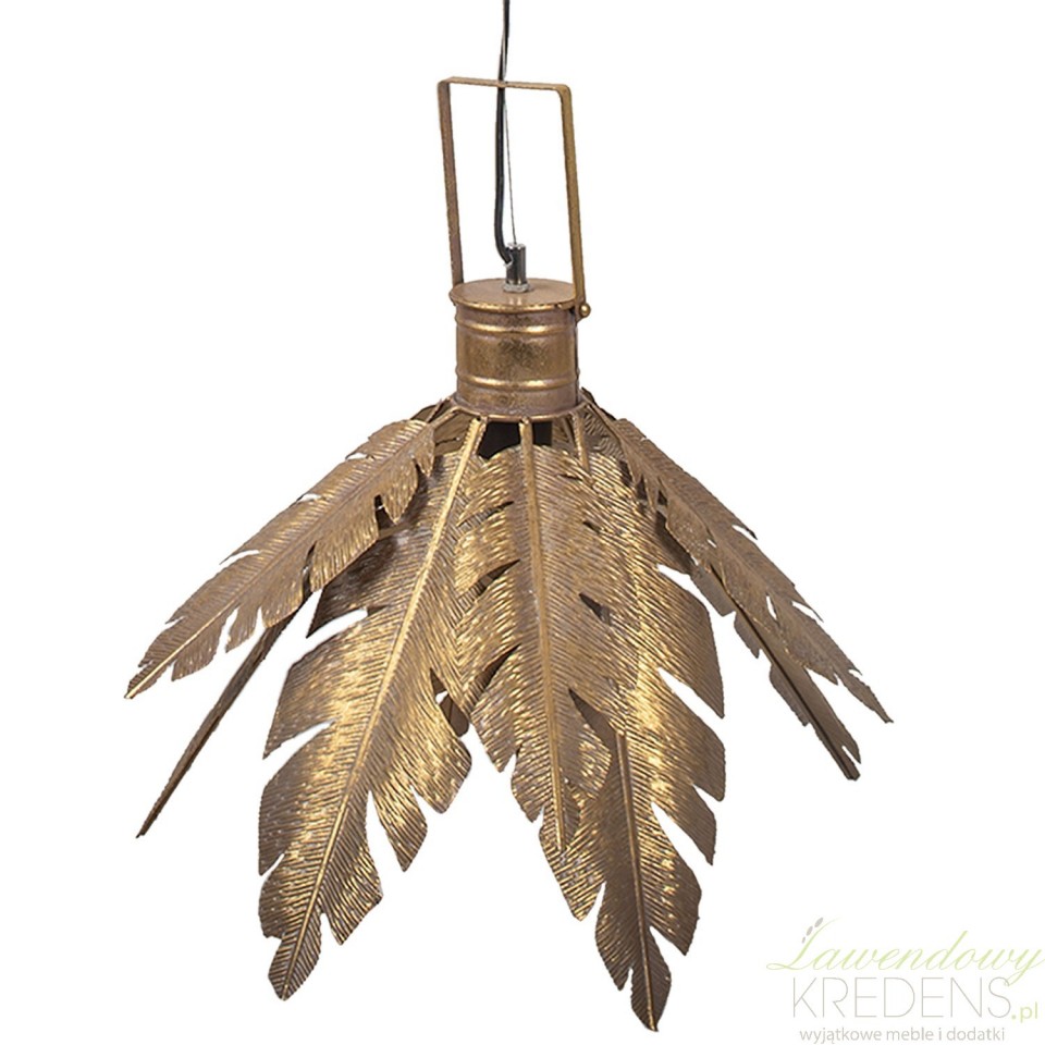 Klosz z metalowych liści w kolorze starego złota zapewni pomieszczeniu światło o łagodnej, ciepłej barwie i zastąpi mało estetyczne, ciężkie żyrandole. Złota lampa sufitowa liście od Clayre & Eef to element oświetlenia wnętrza odpowiedni do najmodniejszych aranżacji prowansalskich, vinatge i boho. Lampa z liśćmi stanowi kluczowy element kompozycji kącika relaksacyjnego, salonu i sypialni. Sam zdecyduj, w którym pomieszczeniu Twojego domu najlepiej będą wyglądały złote lampy i abażury, i zamów je już dzisiaj nei wychodząc z domu!