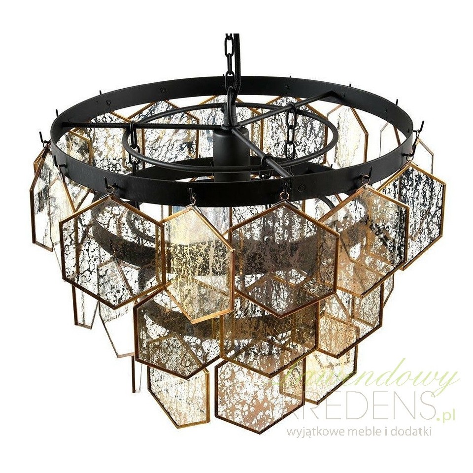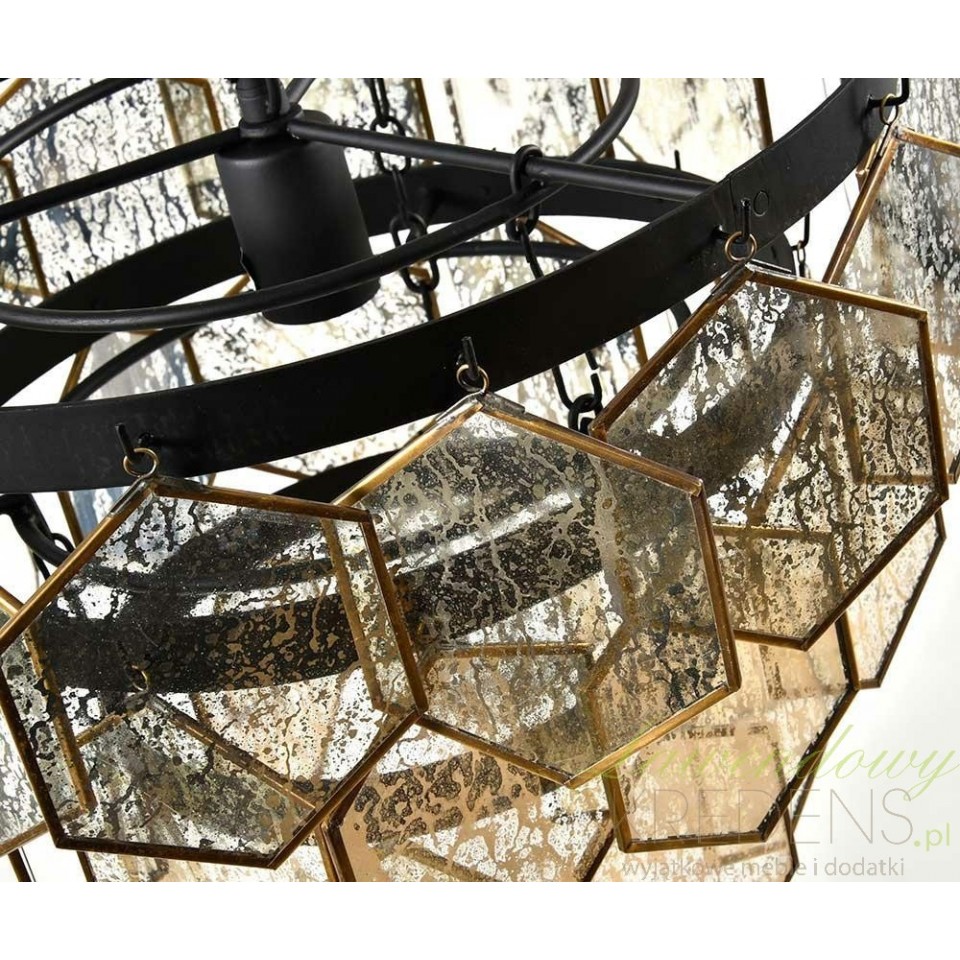Lampa sufitowa Belldeco Glamour składa się z delikatnie zwisających szklanych heksagonów, które pięknie odbijają światło, tworząc magiczne efekty świetlne w całym pomieszczeniu. Każdy szklany element jest zdobiony subtelnymi złotymi akcentami, które dodają lampie niepowtarzalnego uroku i elegancji.
