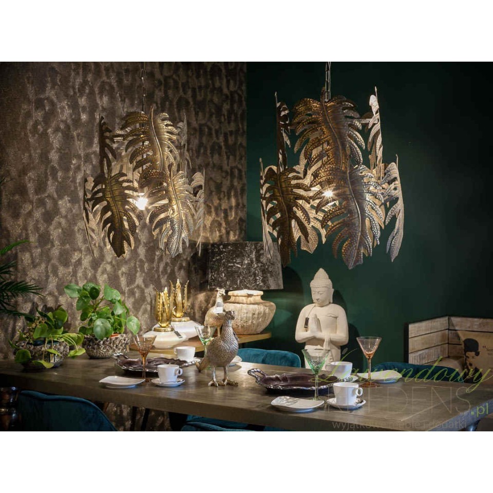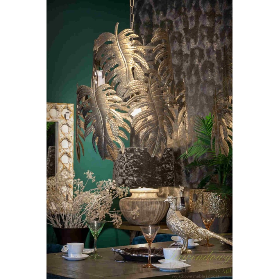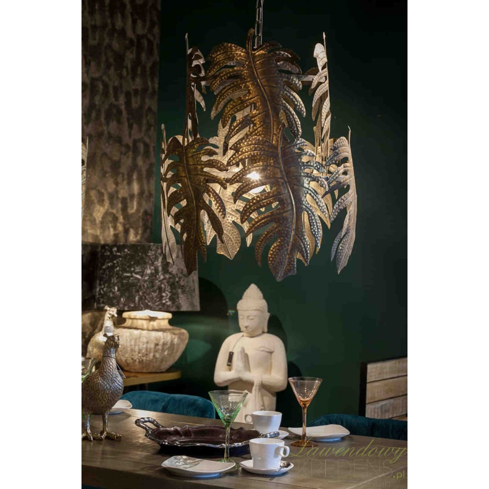 Oto oszałamiająca lampa wisząca Aluro Omara, która przeniesie Cię w tropikalne zakątki i doda elegancji Twojemu wnętrzu. Wykonana z metalowych elementów w kształcie liści palmy, jest prawdziwym dziełem sztuki.