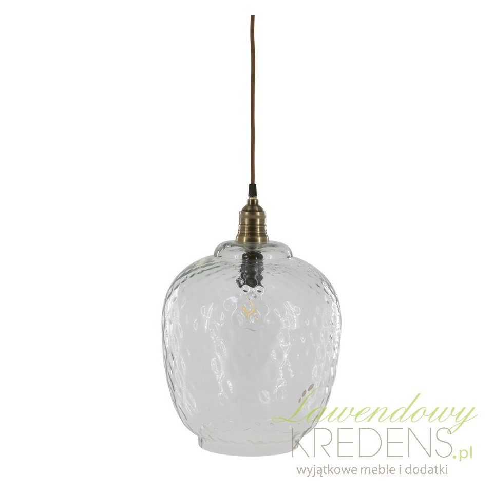 Szklana lampa wisząca Chic Antique A to wyjątkowe oświetlenie w klimacie retro, które nada wnętrzom charakteru i przytulności. Transparentny, tłoczony klosz pięknie rozprasza światło, tworząc nastrojową atmosferę. Połączenie szkła i mosiądzu sprawia, że jest to model zarówno dekoracyjny, jak i praktyczny – idealny wybór dla miłośników stylu vintage, prowansalskiego oraz klasycznych aranżacji.