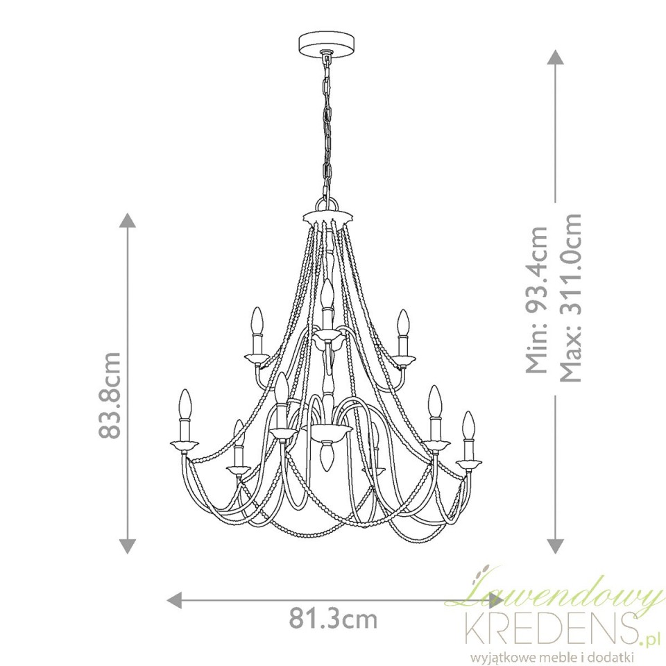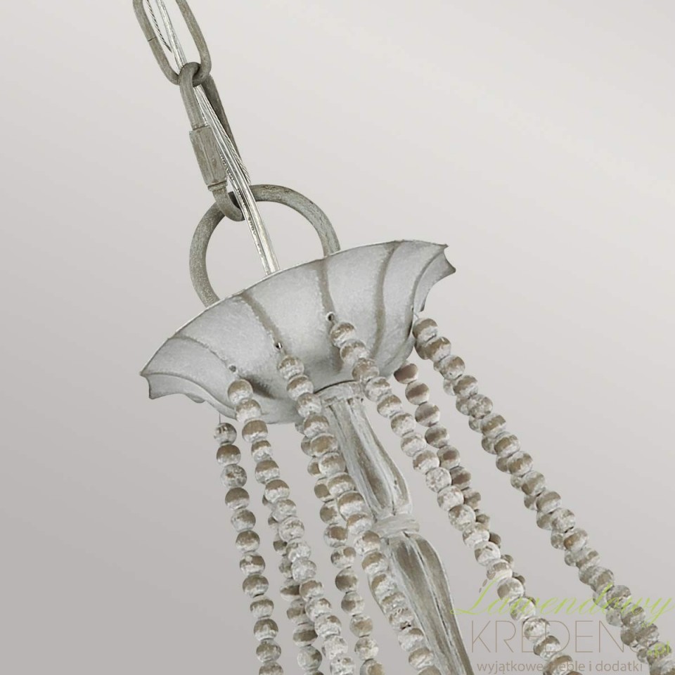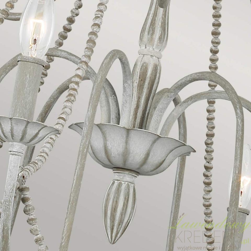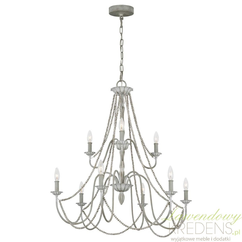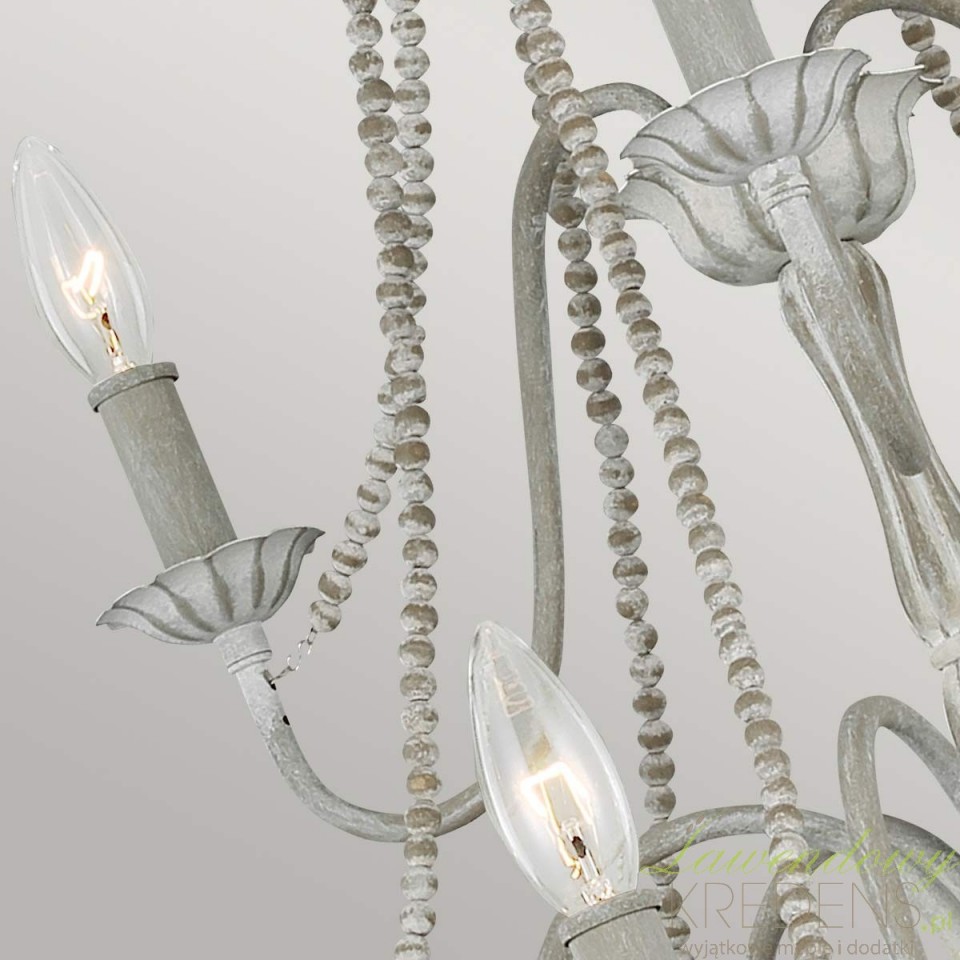 Szukasz oświetlenia, które rozjaśni duży stół lub salon, a jednocześnie nie będzie wyglądać ciężko? Maryville z 9 źródłami światła daje wyraźną, równomierną poświatę i pomaga „zebrać” przestrzeń w jedną spójną całość. Przecierany szary finisz wygląda jak lekko postarzana patyna – dzięki temu żyrandol ociepla wnętrze i dodaje mu charakteru bez efektu przesady.Dekoracyjnym znakiem rozpoznawczym serii są łańcuszki z drewnianych koralików. To detal, który wprowadza subtelną elegancję w duchu francuskiego rustykalnego stylu, a jednocześnie świetnie łączy się z nowoczesnymi meblami: gładkimi frontami, jasnym drewnem czy czarnymi akcentami. Maryville nie dominuje – buduje nastrój i podkreśla aranżację.Do jakich wnętrz pasuje najlepiej?