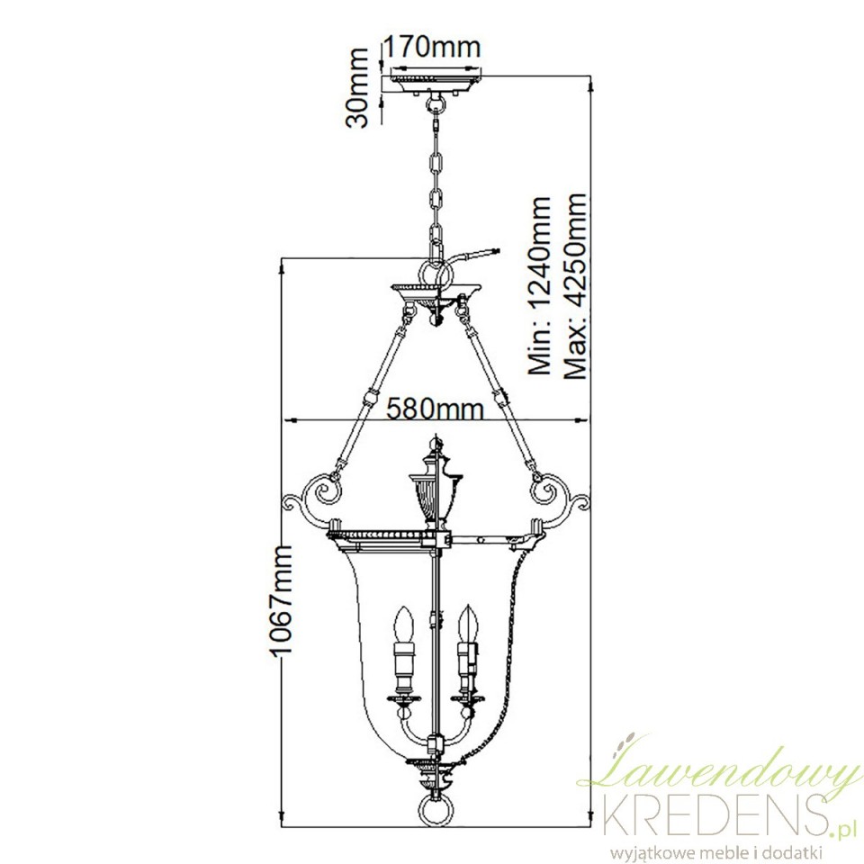 Cambridge czerpie z form minionych epok: smukłe zawiesia, dopracowane detale i proporcje, które naturalnie przyciągają wzrok. To oprawa, która świetnie wygląda w dworku, pałacowym wnętrzu czy budynku sakralnym, ale równie dobrze „podnosi rangę” współczesnego domu, gdy chcesz dodać mu bardziej historycznego charakteru. Duża średnica klosza i wyraźna bryła sprawiają, że lampa staje się centralnym punktem pomieszczenia zamiast przypadkowym dodatkiem.Praktyczne dopasowanie: wysokość i światło pod kontrolą