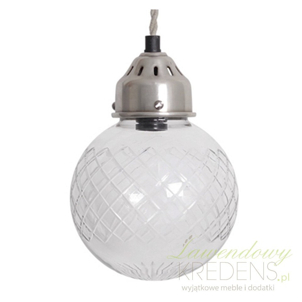 Szklana lampa firmy Chic Antique wykonana jest z wysokiej jakości szkła ze wzorkiem w kratkę. Lampa wisi na kablu i stanowi oryginalną i wyjątkową dekorację mieszkania. Świetnie nadaje się do bar czy restauracji.