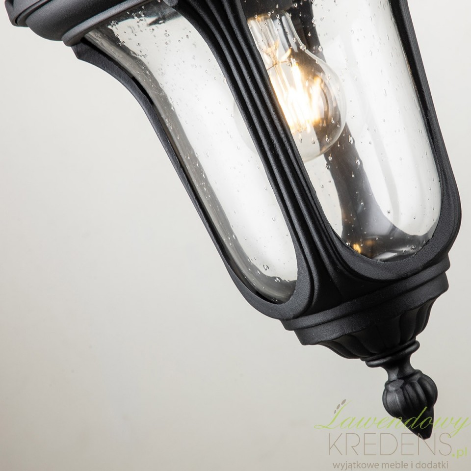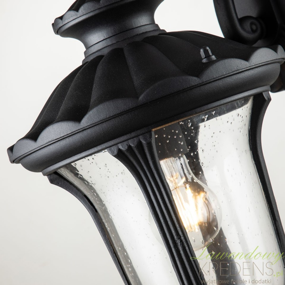 Krótki opis: Klasyczny kinkiet ogrodowy w stylu vintage z aluminiowym korpusem, szkłem z bąbelkami powietrza, klasą szczelności IP44 i 3-letnią gwarancją antykorozyjną. Idealny na elewację, taras i wejście.