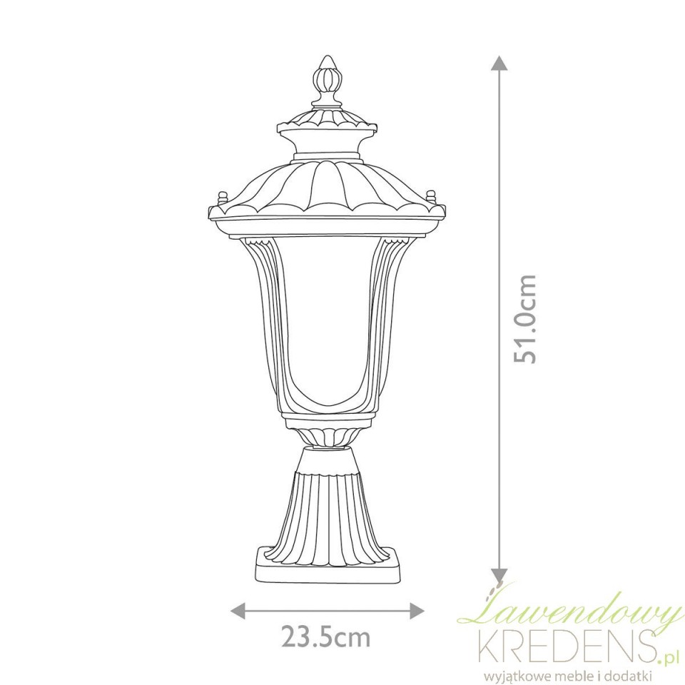 Lampa Ogrodowa Latarnia Vintage Stojąca Chicago C to propozycja dla osób, które chcą stworzyć eleganckie, spójne oświetlenie przy domu, tarasie lub wzdłuż ścieżki. Ta klasyczna latarnia łączy dekoracyjny charakter z praktyczną trwałością, dlatego świetnie sprawdza się jako jedna z głównych lamp ogrodowych w aranżacjach inspirowanych stylem przełomu XIX i XX wieku. Aluminiowy korpus, ozdobny daszek i szybki ze szkła z bąbelkami powietrza budują klimat vintage, który ociepla elewację i porządkuje przestrzeń wokół posesji.