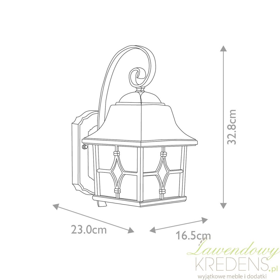 Czarna oprawa z dekoracyjnym ramieniem i subtelnym podziałem szkła porządkuje przestrzeń wokół drzwi, bramy lub tarasu. Taka lampa zewnętrzna ścienna nie jest tylko ozdobą – poprawia widoczność po zmroku, ułatwia znalezienie kluczy i zwiększa komfort poruszania się wokół budynku. Jeśli szukasz oświetlenia, które nie zginie na tle elewacji, Kent daje wyrazisty, elegancki efekt bez przesadnej dekoracyjności.Gdzie sprawdzi się najlepiej