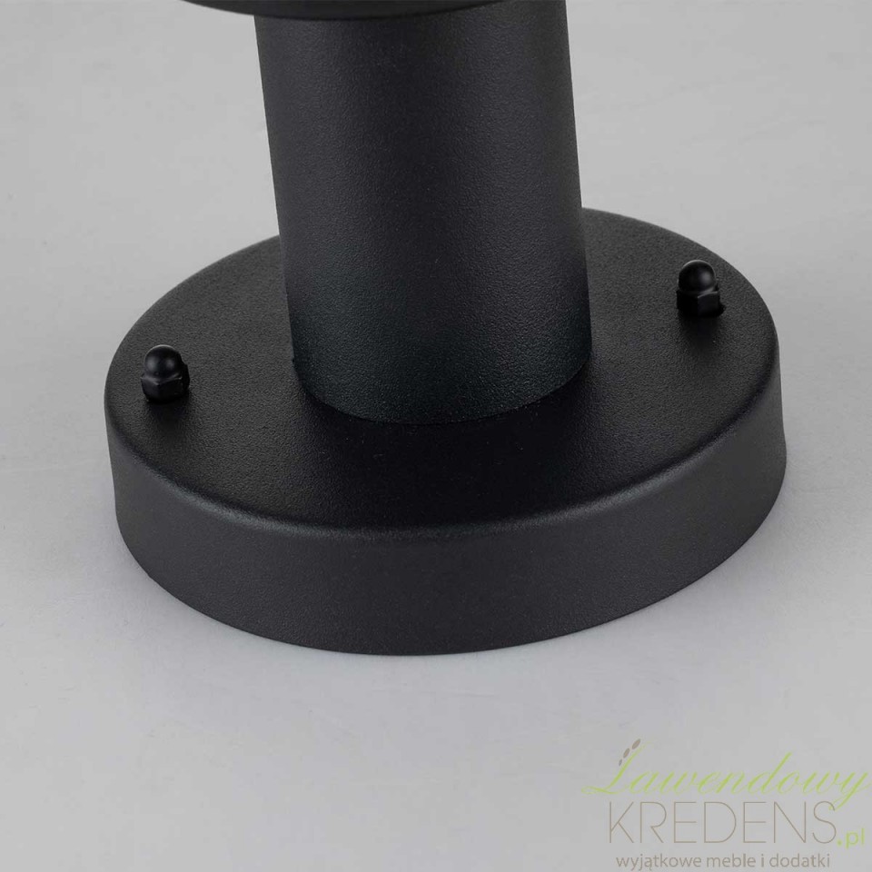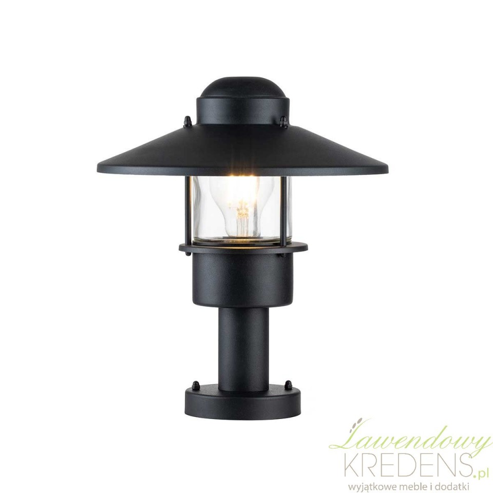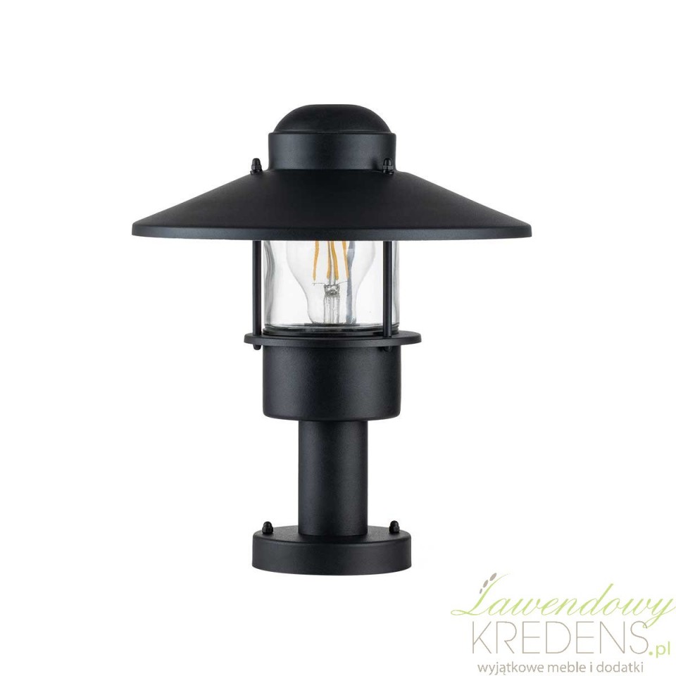 Prosta, czarna sylwetka inspirowana stylem skandynawskim i loftowym łatwo wpisuje się w nowoczesną architekturę. Ta zewnętrzna lampa stojąca dobrze prezentuje się przy białej i szarej elewacji, drewnie, cegle oraz w otoczeniu donic i niskiej zieleni. Przeszklona osłonka subtelnie eksponuje źródło światła, dlatego oprawa nie tylko oświetla, ale też buduje przyjemny klimat wokół domu.