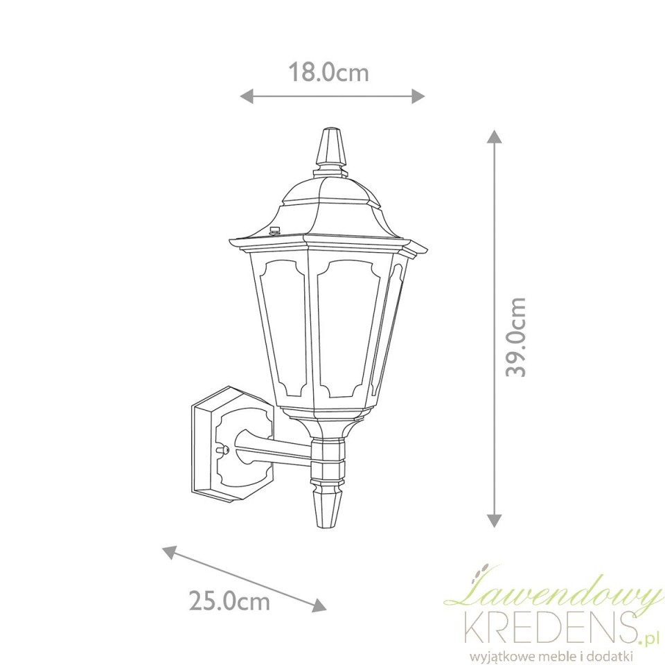 Model należy do kolekcji inspirowanej tradycyjnym wzornictwem, ale odpowiada na współczesne potrzeby użytkowe. Odporność na codzienne warunki zewnętrzne pozwala bezpiecznie stosować go przy elewacji, nawet w miejscach narażonych na wilgoć i zmienną pogodę. Dodatkowym atutem jest 10-letnia gwarancja antykorozyjna, która potwierdza solidne wykonanie i daje większy spokój przy zakupie oświetlenia do ogrodu, na werandę czy do strefy wejściowej.