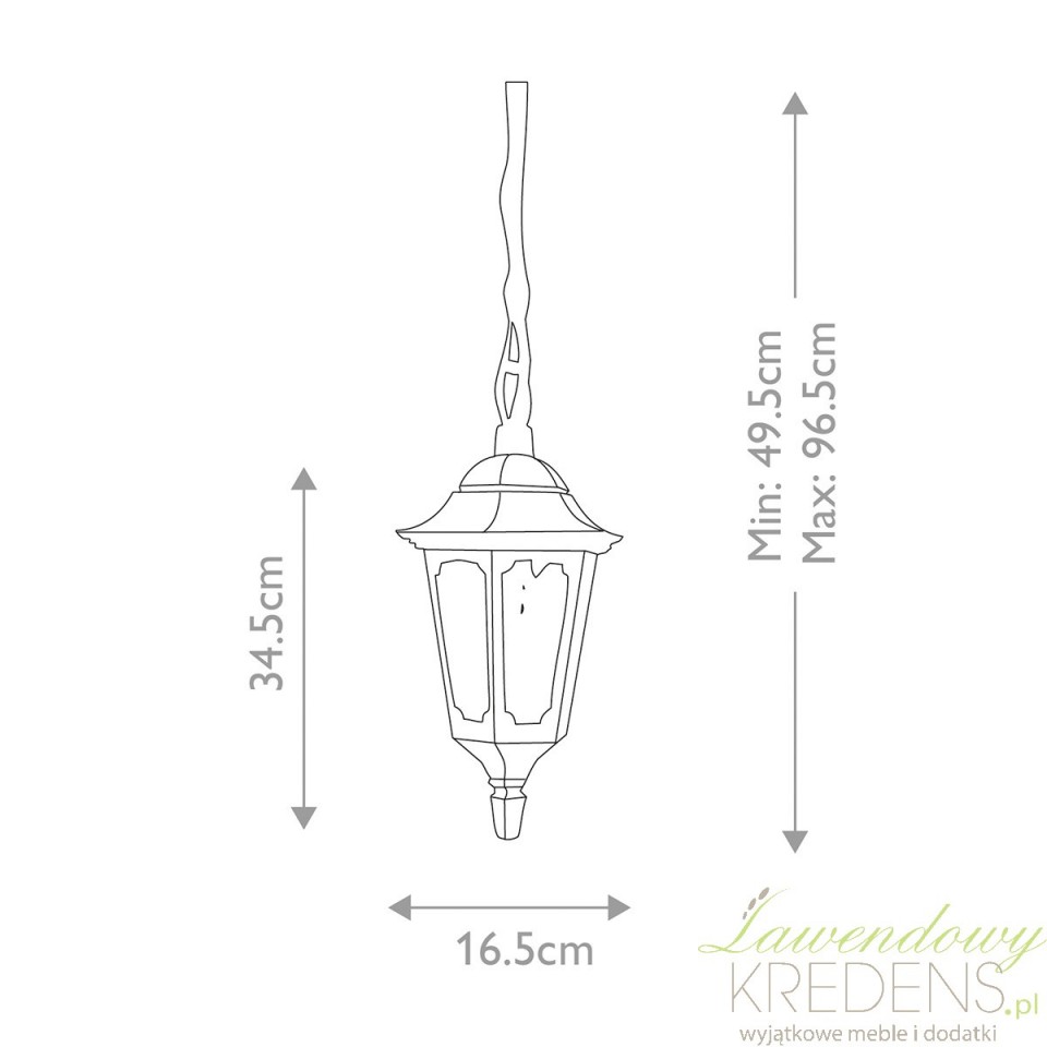 Latarnia wisząca Parish B to wybór dla osób, które chcą oświetlić wejście, taras lub zadaszony ganek w stylu klasycznym, ale bez ryzyka szybkiego zużycia oprawy. Czarne wykończenie i przezroczyste szkło tworzą elegancką formę, która pasuje zarówno do domu tradycyjnego, jak i nowoczesnej elewacji. Taki model porządkuje strefę wejścia i od razu poprawia odbiór całej posesji po zmroku.