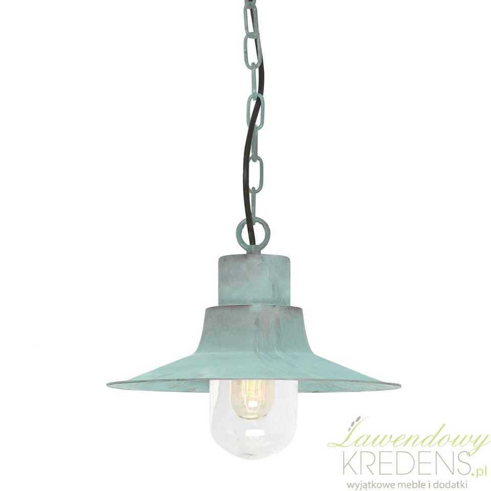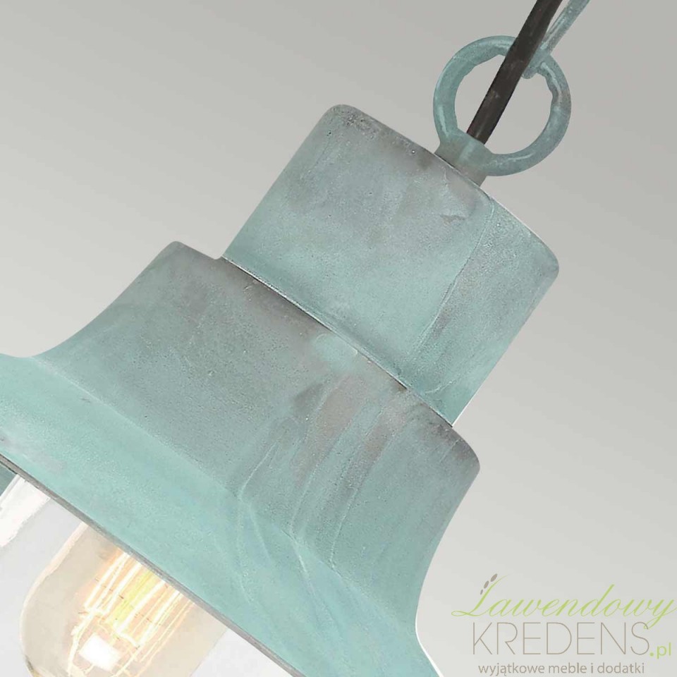 Miętowa latarnia wisząca zewnętrzna Sheldon to propozycja dla osób, które chcą doświetlić wejście, taras lub zadaszony ganek i jednocześnie nadać elewacji wyrazisty charakter. Jej forma nawiązuje do wiejskich latarni z początku XX wieku, dlatego świetnie uzupełnia aranżacje loftowe, industrialne, rustykalne i modern farmhouse. To oświetlenie, które nie ginie na tle fasady, lecz buduje klimat już od progu.