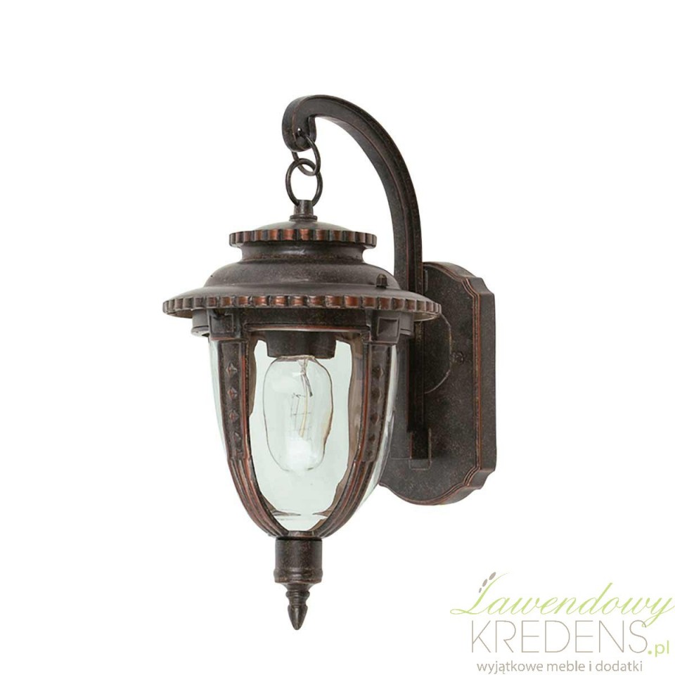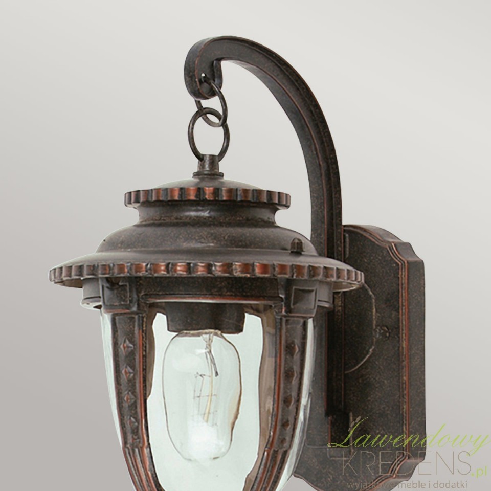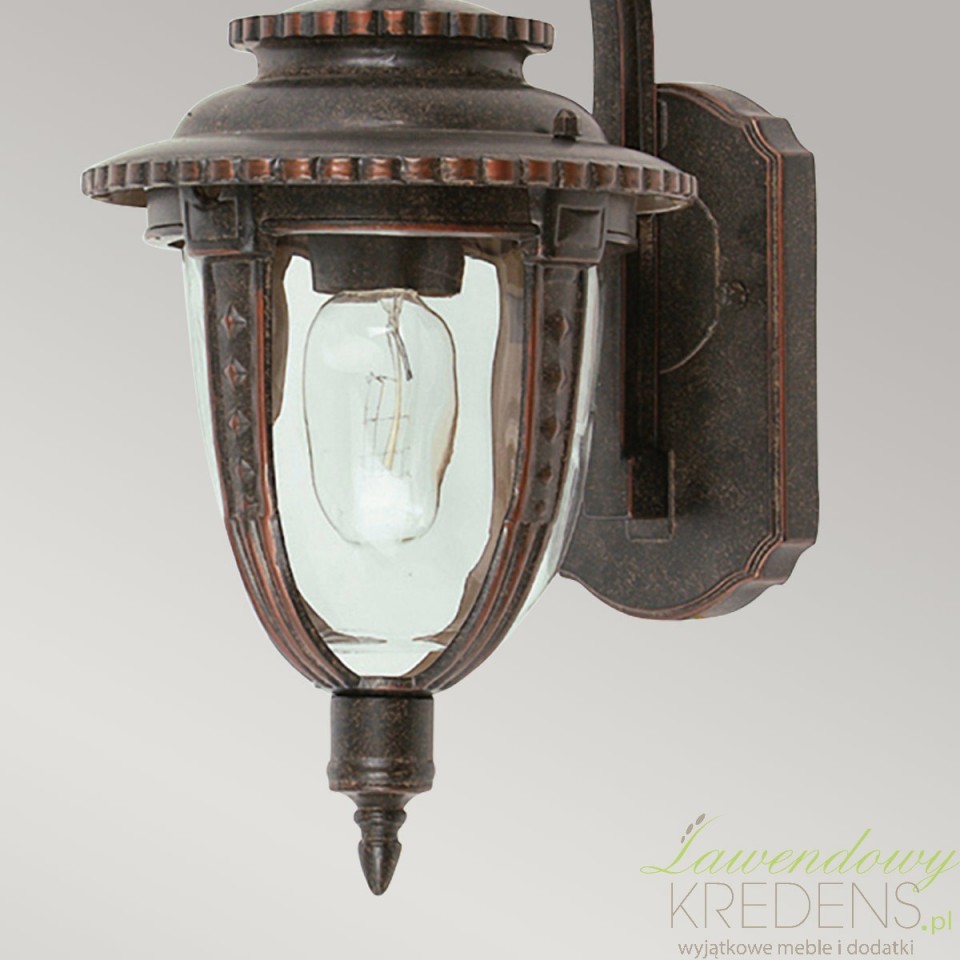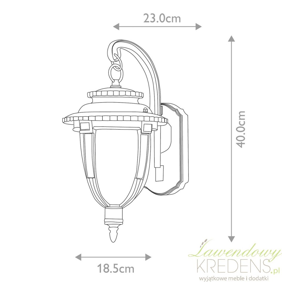 Kinkiet ogrodowy vintage St Louis to wybór dla osób, które chcą oświetlić wejście do domu, taras lub elewację bez psucia charakteru budynku nowoczesną oprawą. Ta ścienna latarnia nawiązuje do angielskiego wzornictwa z przełomu XIX i XX wieku, dlatego świetnie wygląda przy klasycznych fasadach, kamienicach, werandach i ogrodach urządzonych w stylu tradycyjnym.