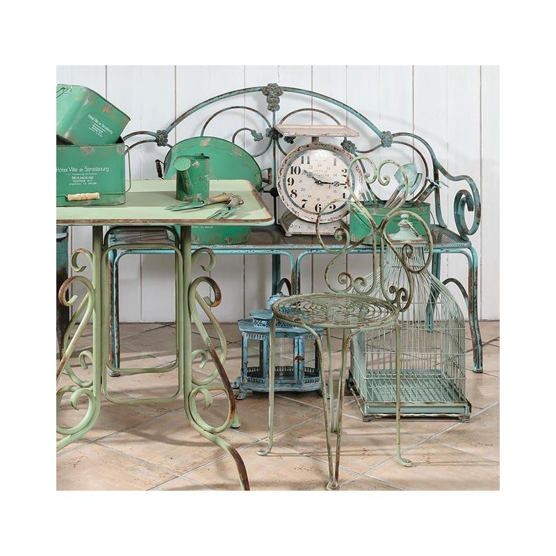 Ławka Belldeco z przepięknej kolekcji Garden Green to najlepszy dowód na to, że meble ogrodowe nie muszą być nudne! Ławka wykonana jest w całości z metalu i celowo postarzana poprzez odpryski farby oraz imitacje rdzawego nalotu. Uroku dodaje ławce oparcie o pięknym, fantazyjnym kształcie. Ławka Garden Green to mebel idealny do ogrodu, na balkon, taras lub werandę.