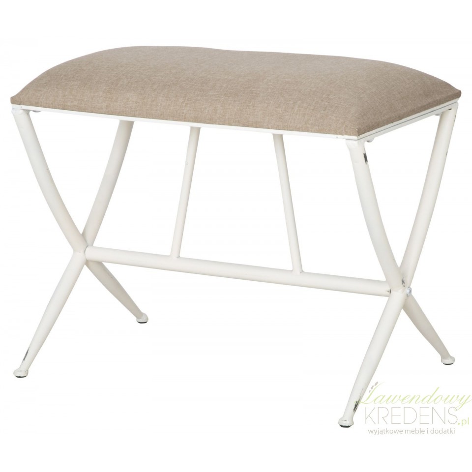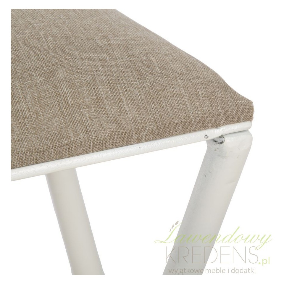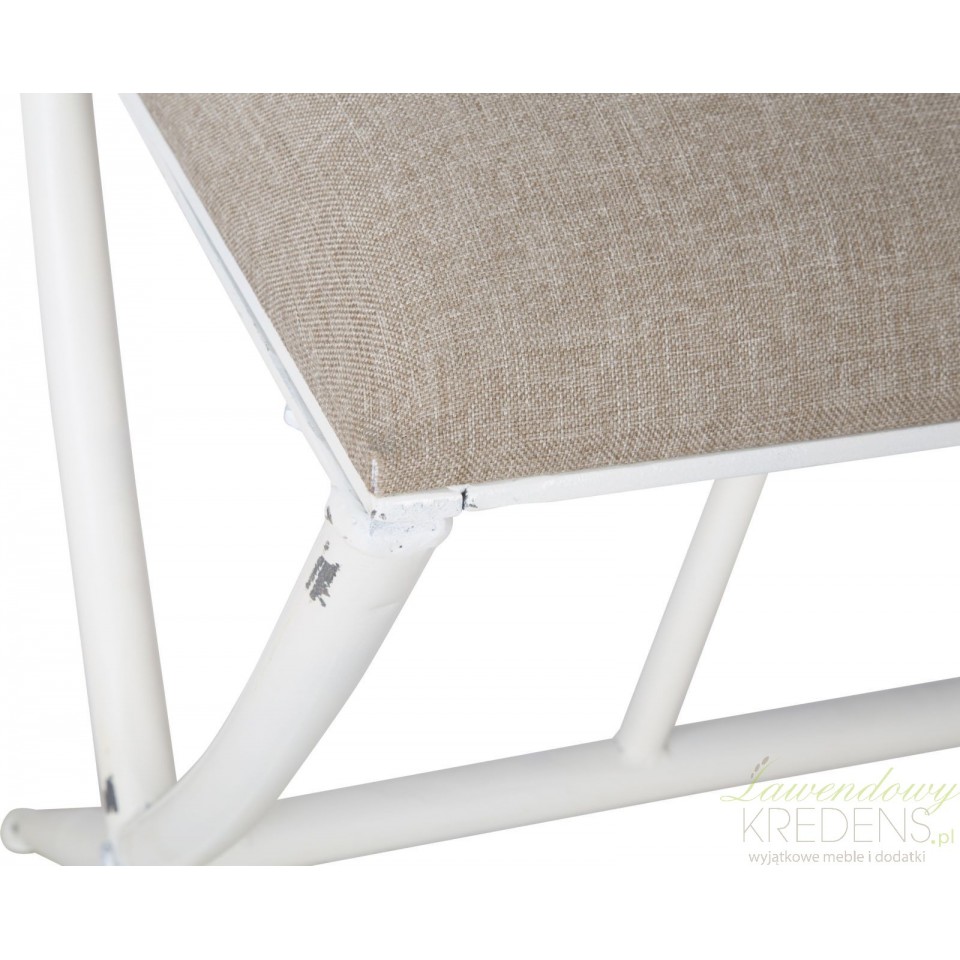 Pozwól sobie na królewski odpoczynek! Metalowa ławka z kolekcji Sarajevo ma prosty kształt oraz miękkie siedzisko, tapicerowane lnianą tkaniną w kolorze beżowym. Podstawę ławki tworzą skrzyżowane ze sobą smukłe nogi metalowe pomalowane na biało i postarzone. Ten kształt, solidne wykonanie i szlachetne połączenie kolorystyczne – z tym właśnie kojarzy się wystrój klimatycznych wnętrz.